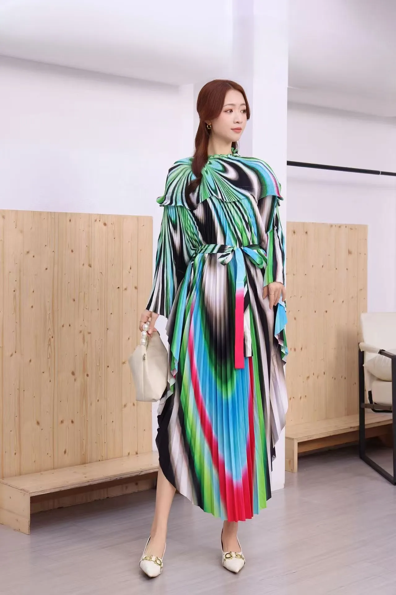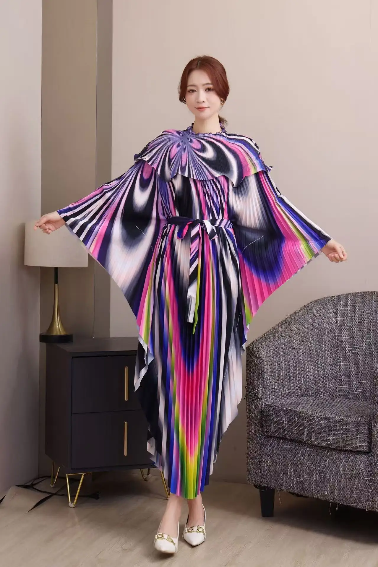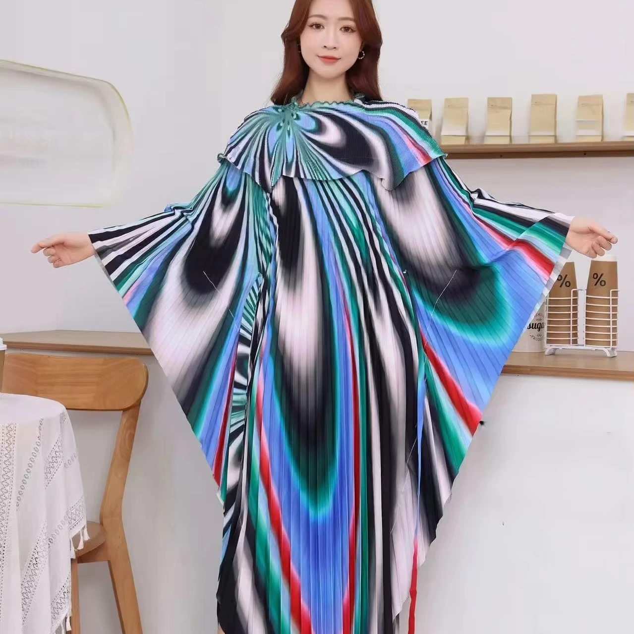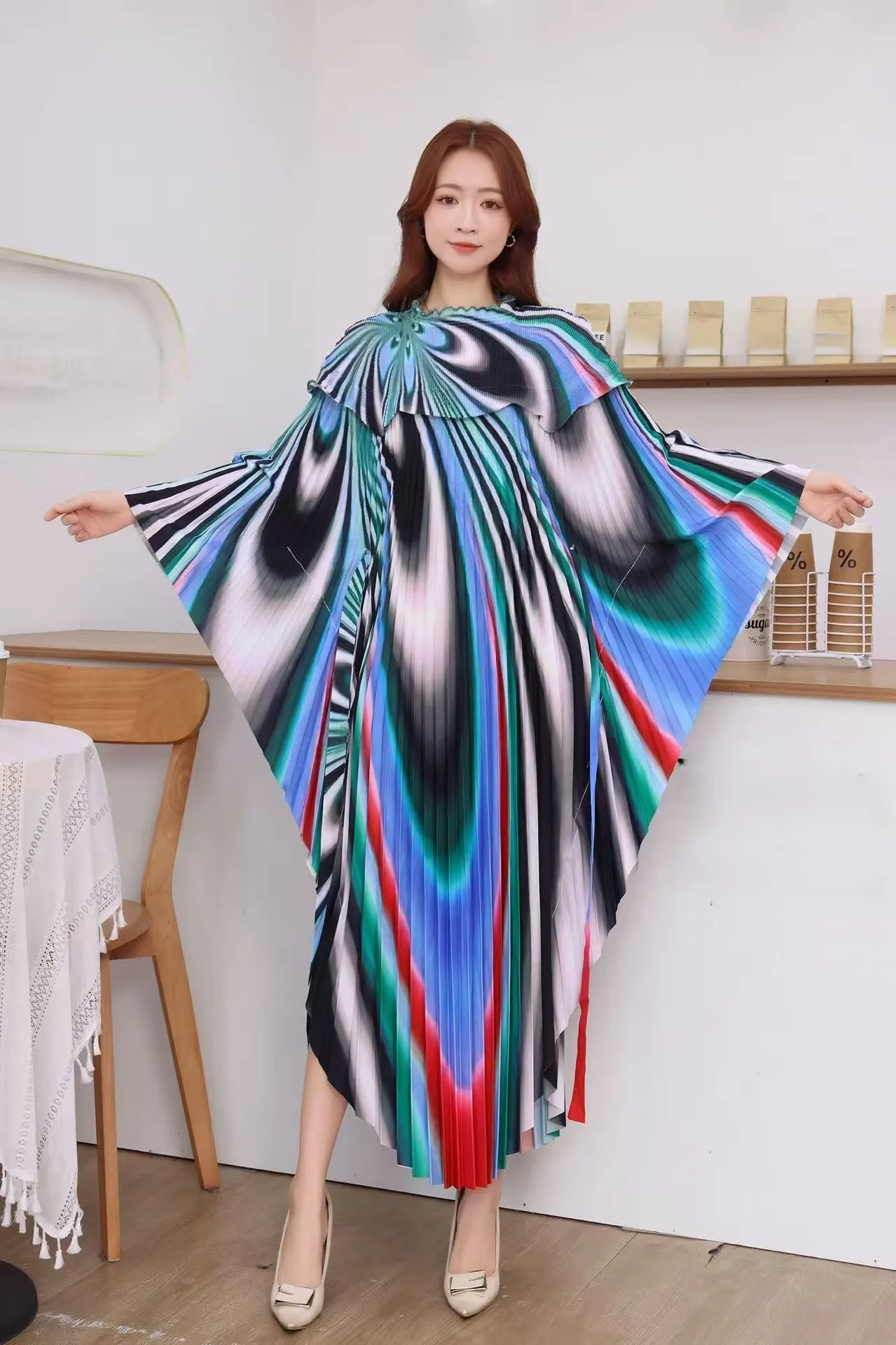 Factory's In-stock Gradient-colored Pleated Dress with batwing Sleeves - Elegant and Stylish Oversized Dress