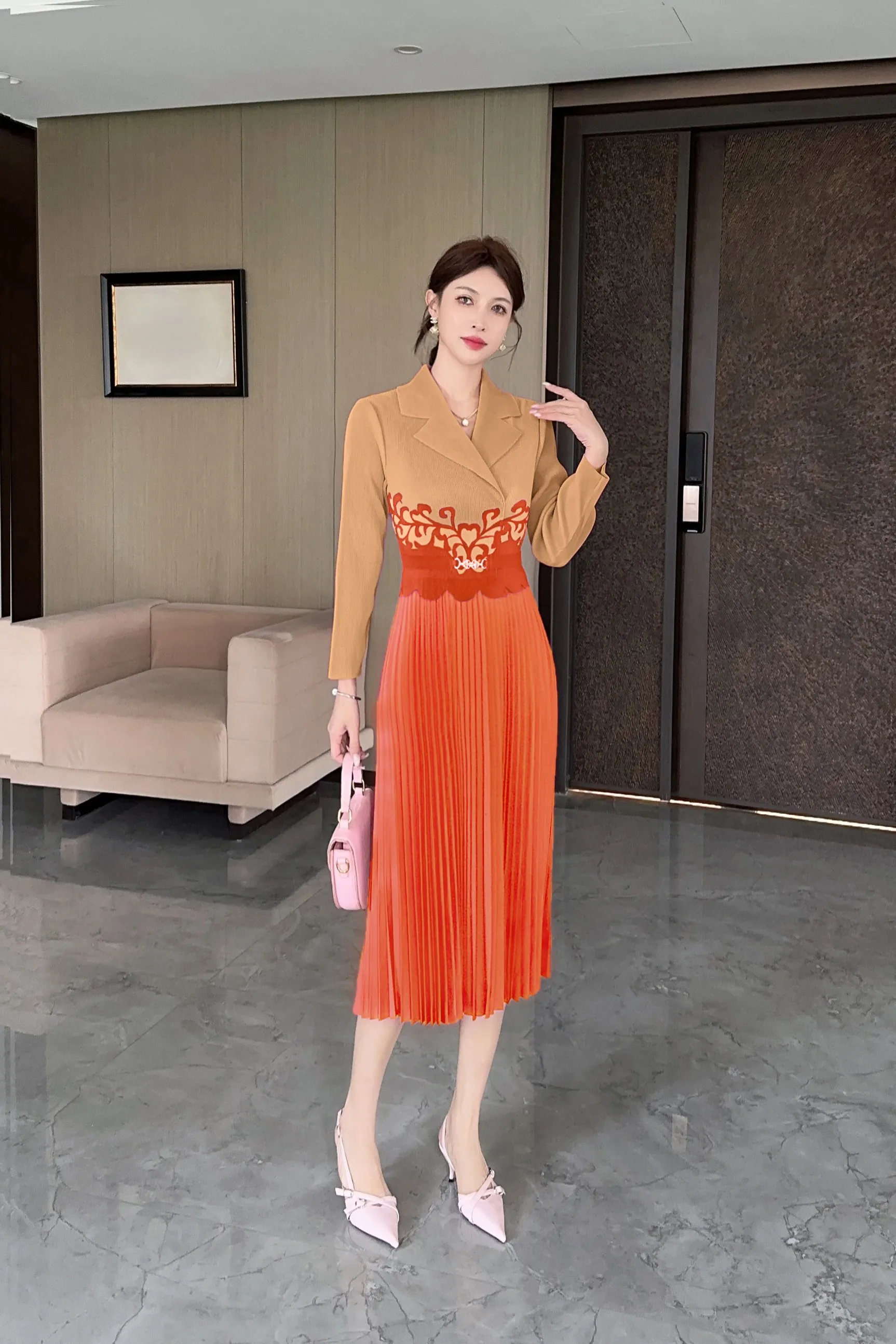 New Large-sized Dress Factory Directly Supplies Exquisite Printed Custom Pleated Dresses