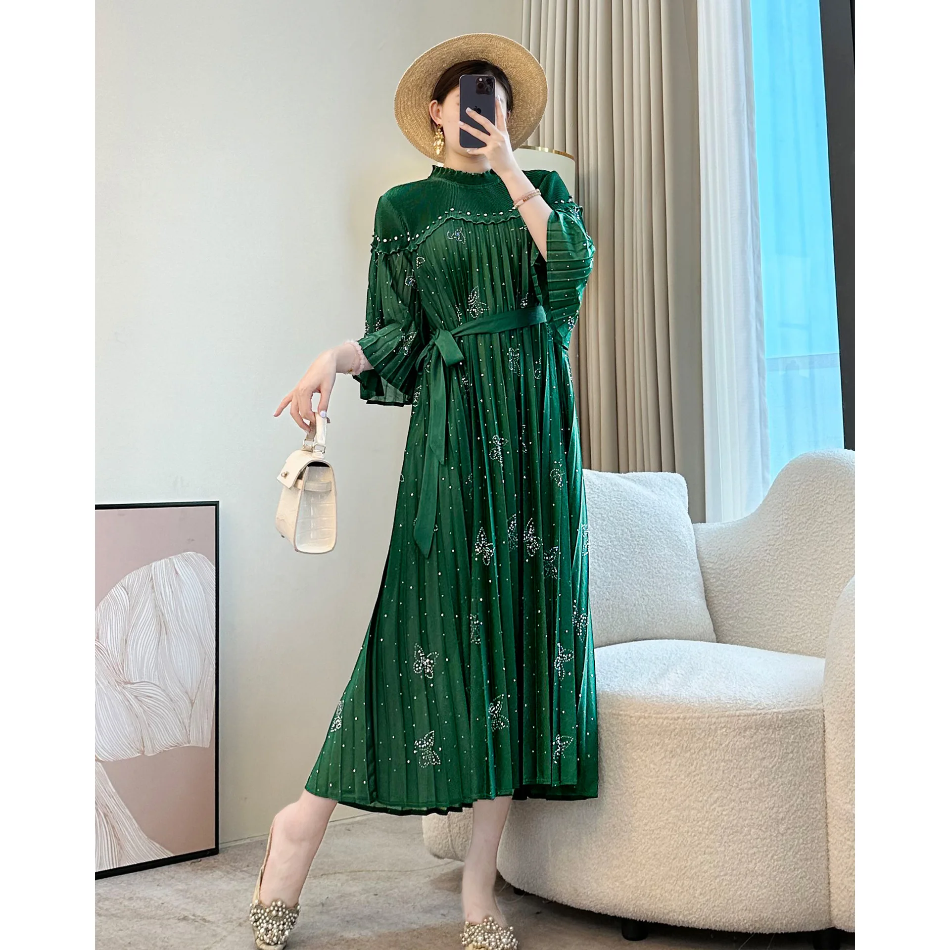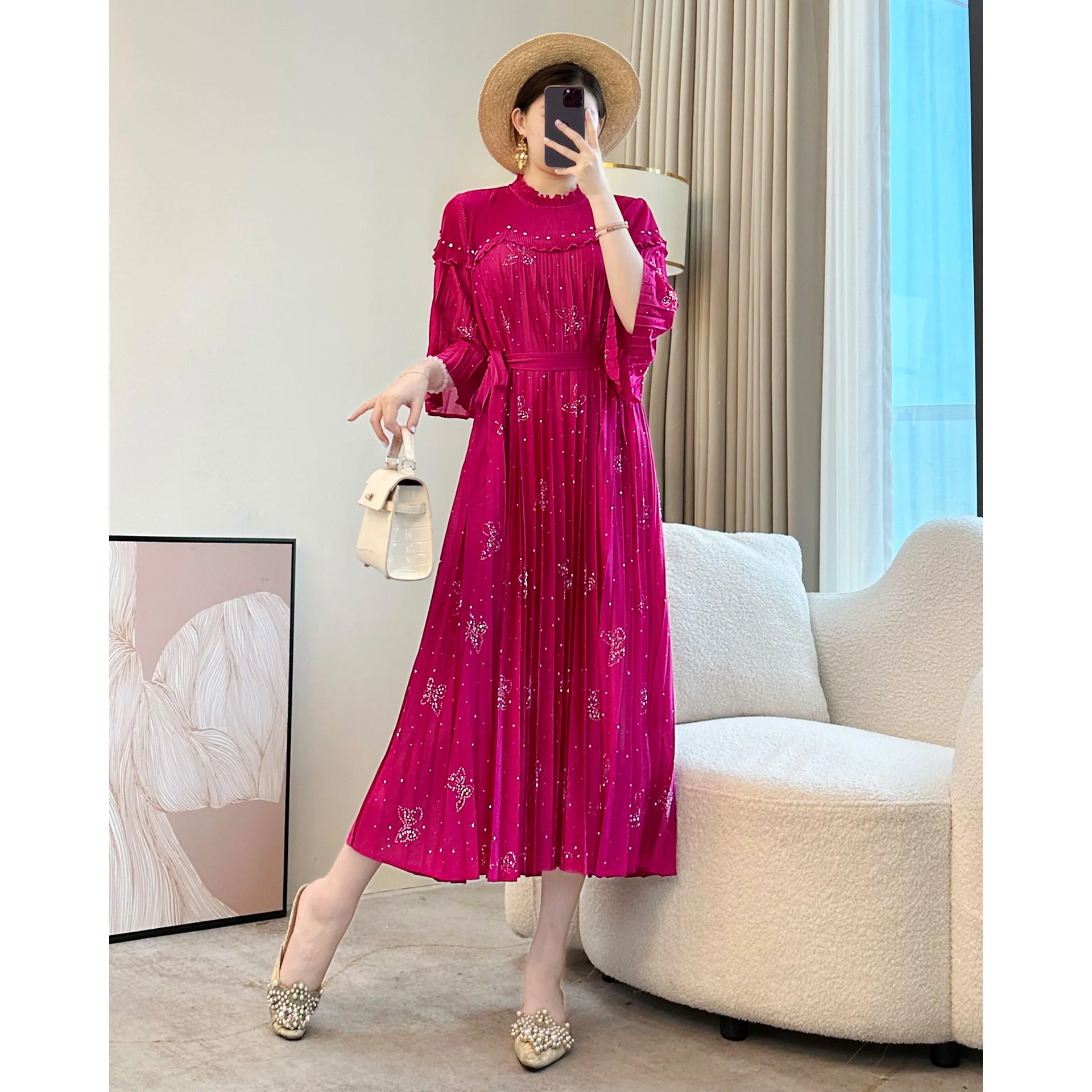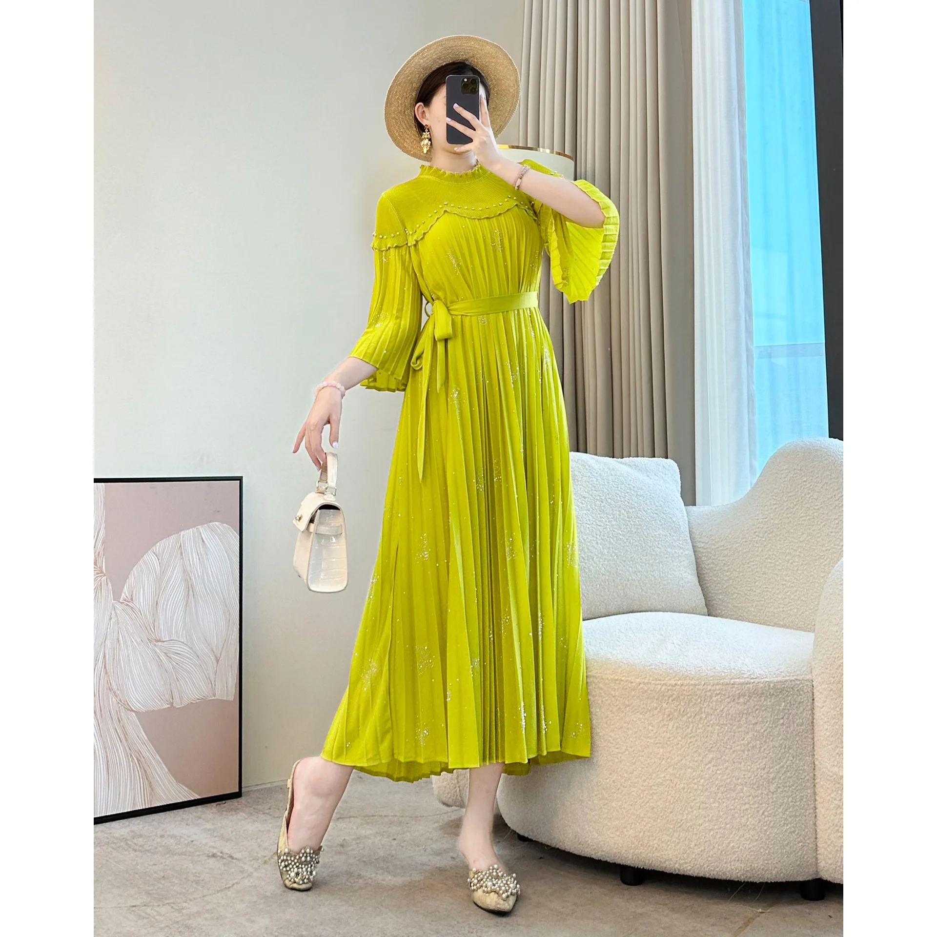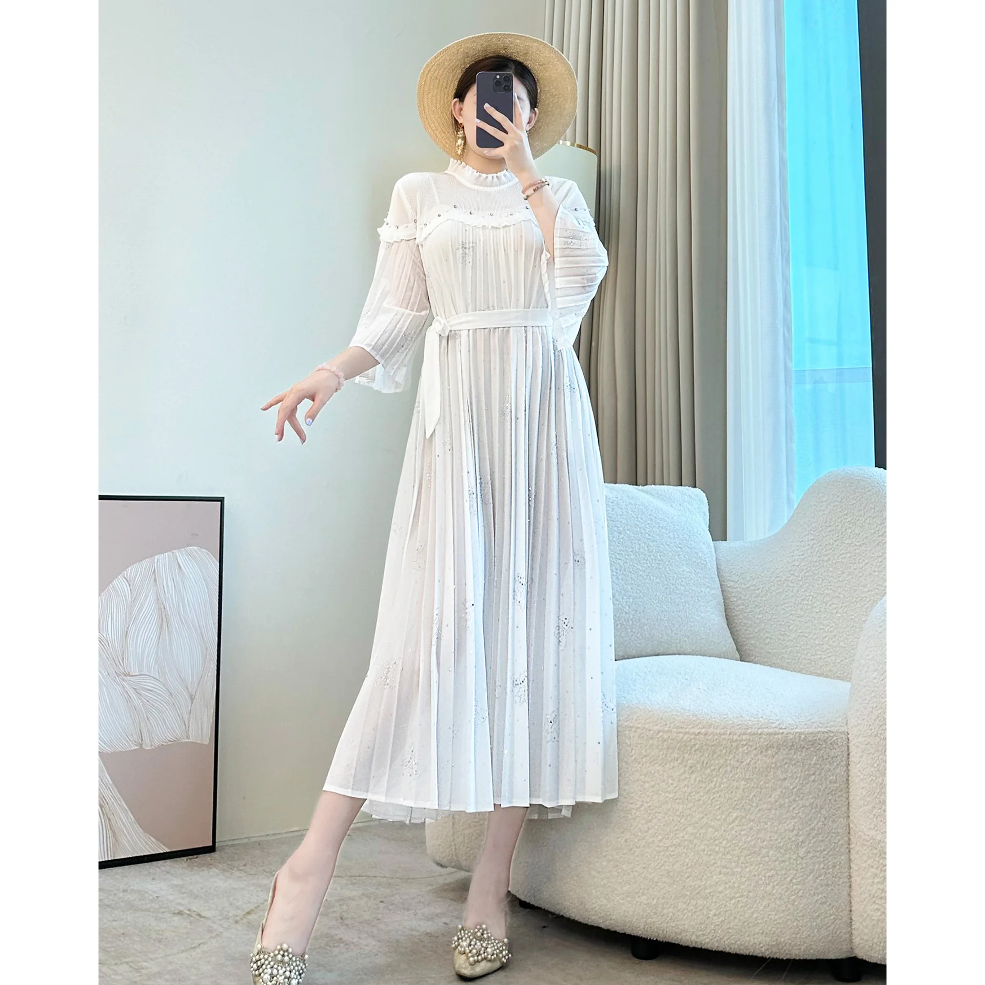 Women's Casual Plus-size Dress Manufacturer Bead-embroidered Elegant Pleated Dress