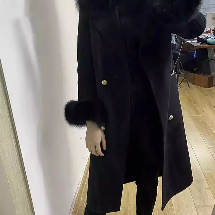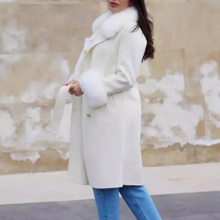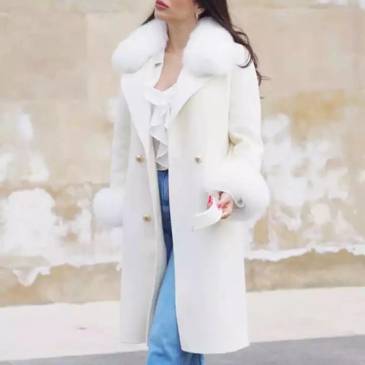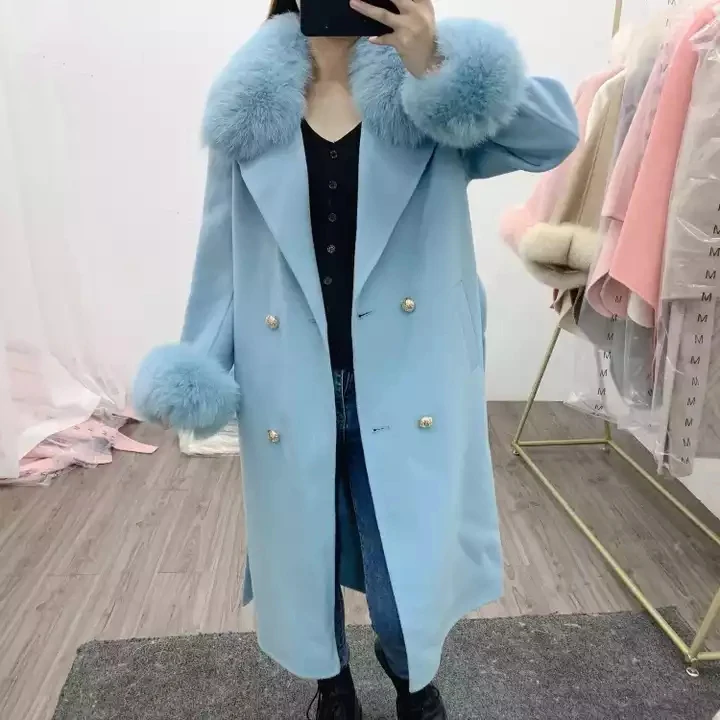 OEM Custom Fashion Casual Women Autumn Winter Wear Coat Clothes Double Breasted Long Wool Coat Lady Long Sleeve Overcoat Jacket
