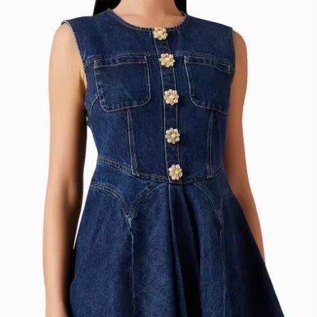 2025 New Fashion Designer Spring Summer OEM Customized Women's Casual Denim Dress Loose A-line Denim Button Dress Manufacturers