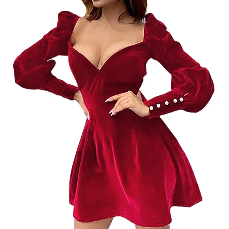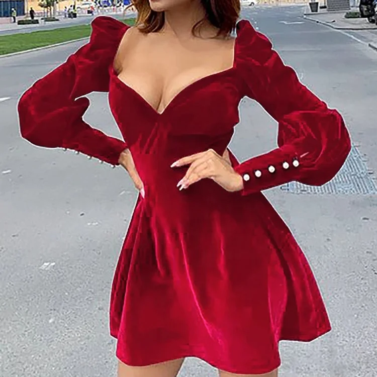 Custom 2026 Club Lady Fashion Vintage Elegant Autumn Luxury Fall Velvet Long Sleeve Party Ruffle Mini Clothes Dress for Women