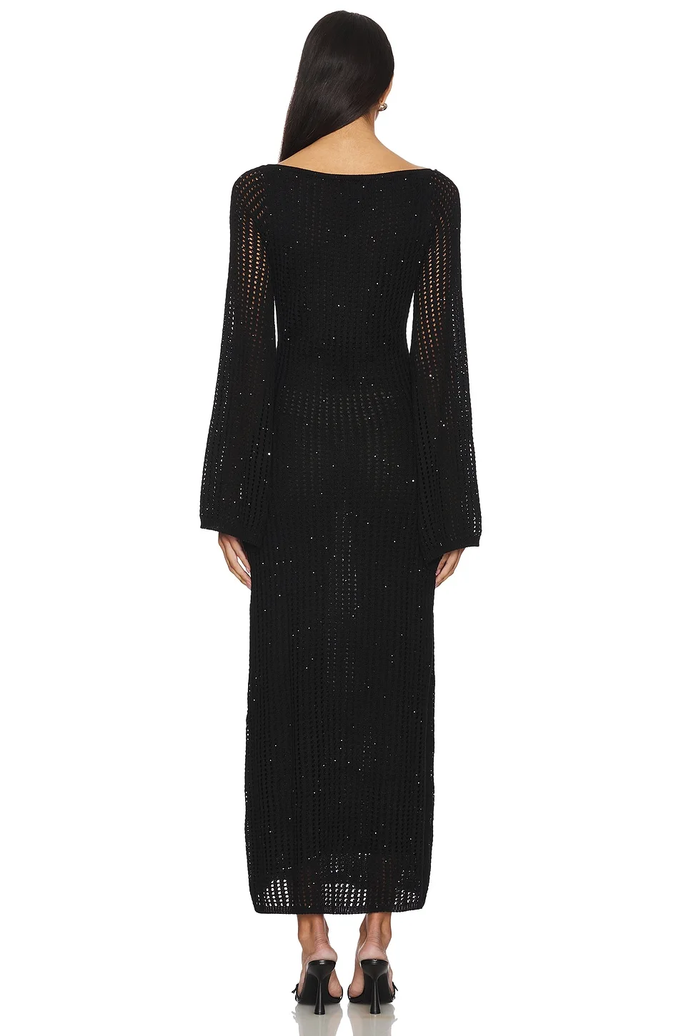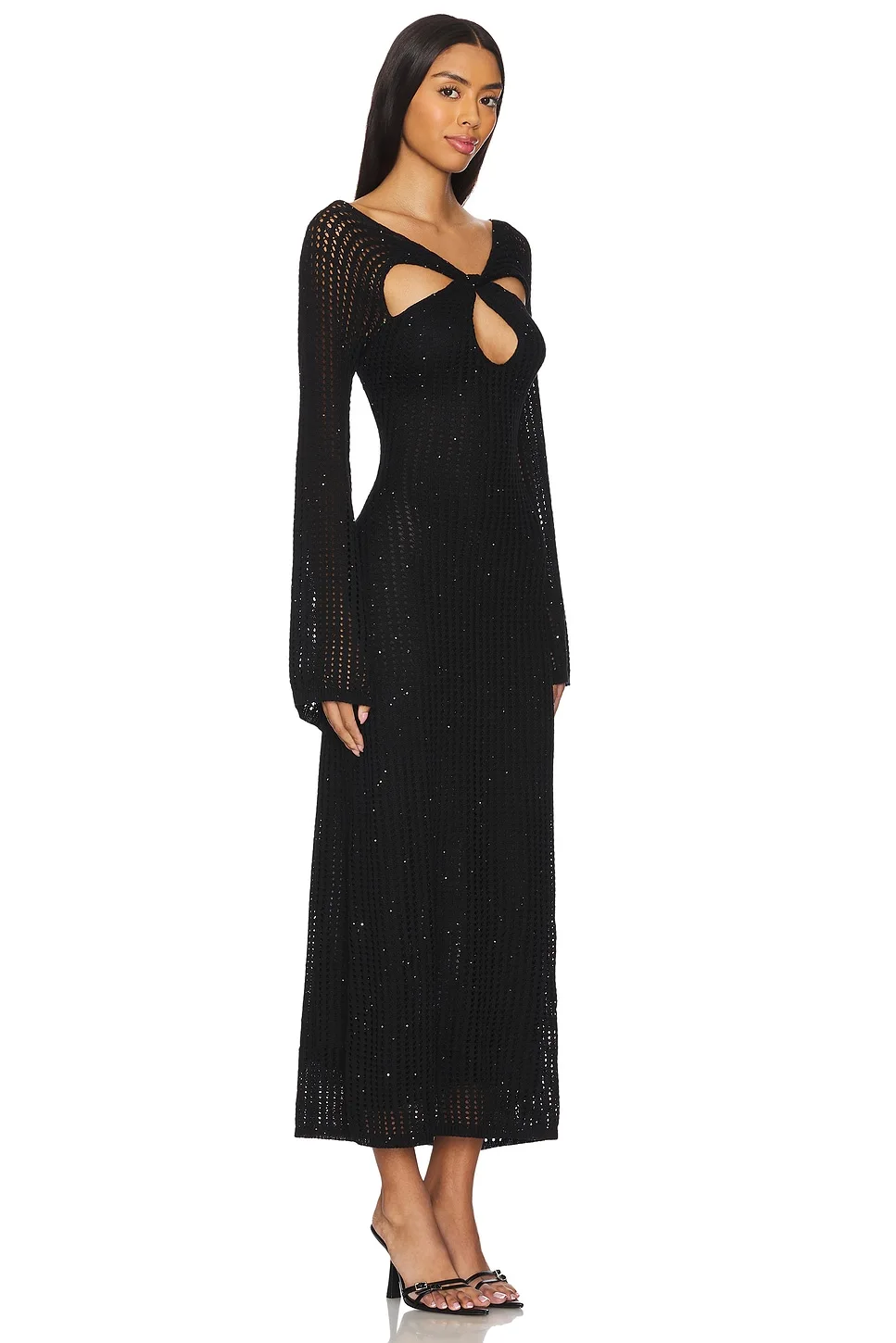 Wholesale 2025 Custom Party Lady Elegant Club Cut Out Clothing Dress Long Sleeve Sequin Midi Prom Women Dresses Manufacturer
