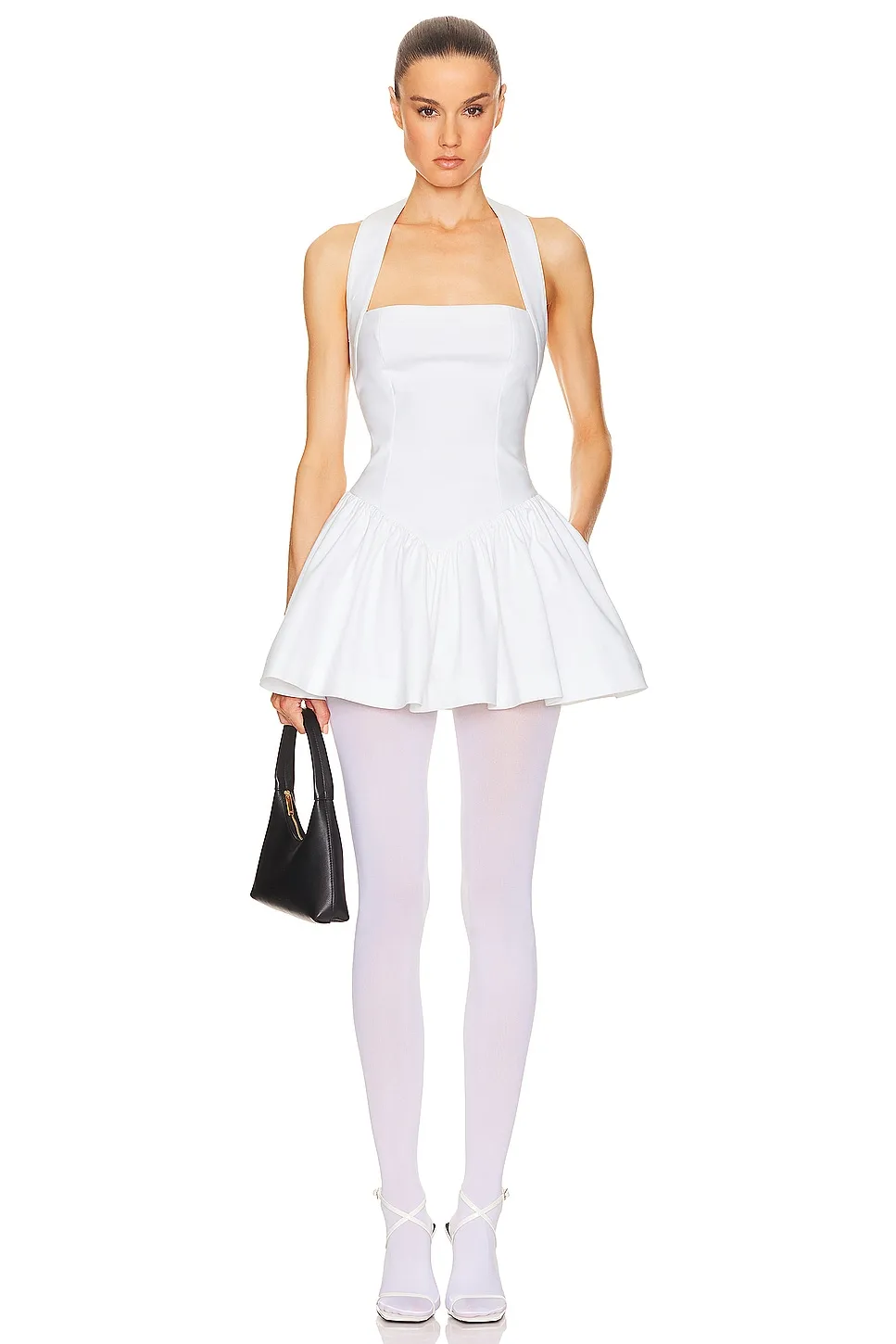 OEM 2024 Women Custom Summer Sleeveless Fitted a Line Pleated Dress Classic Soft Cotton Elegant Solid Black Halter Mini Dress