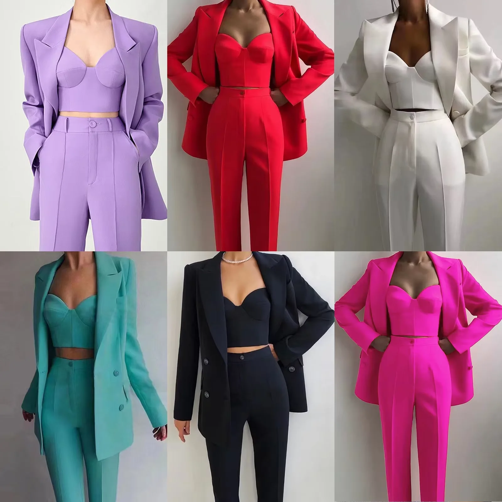 Custom Women Asymmetric Ruffle Hem Business 3 Piece Set Office Outfit Blazer Plain Double Breasted Office Suits Set for Women