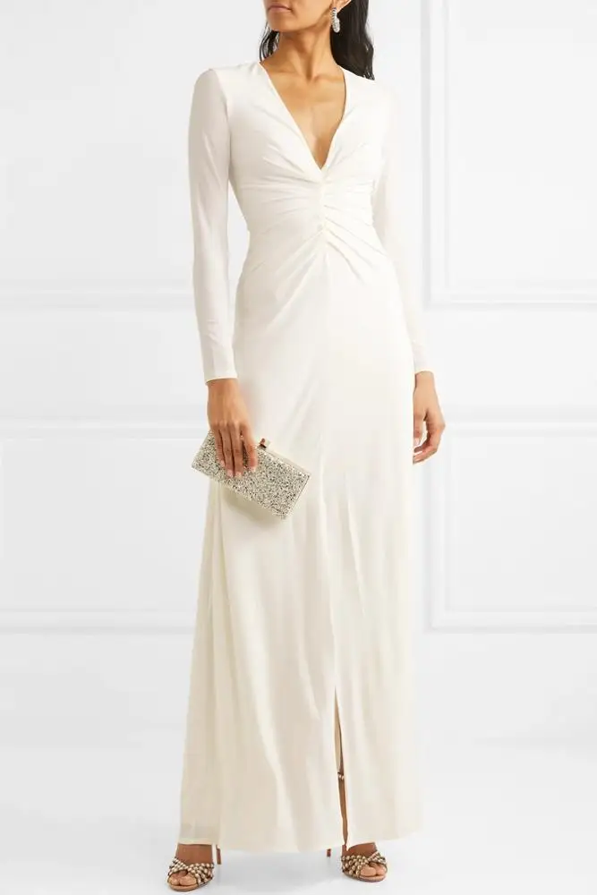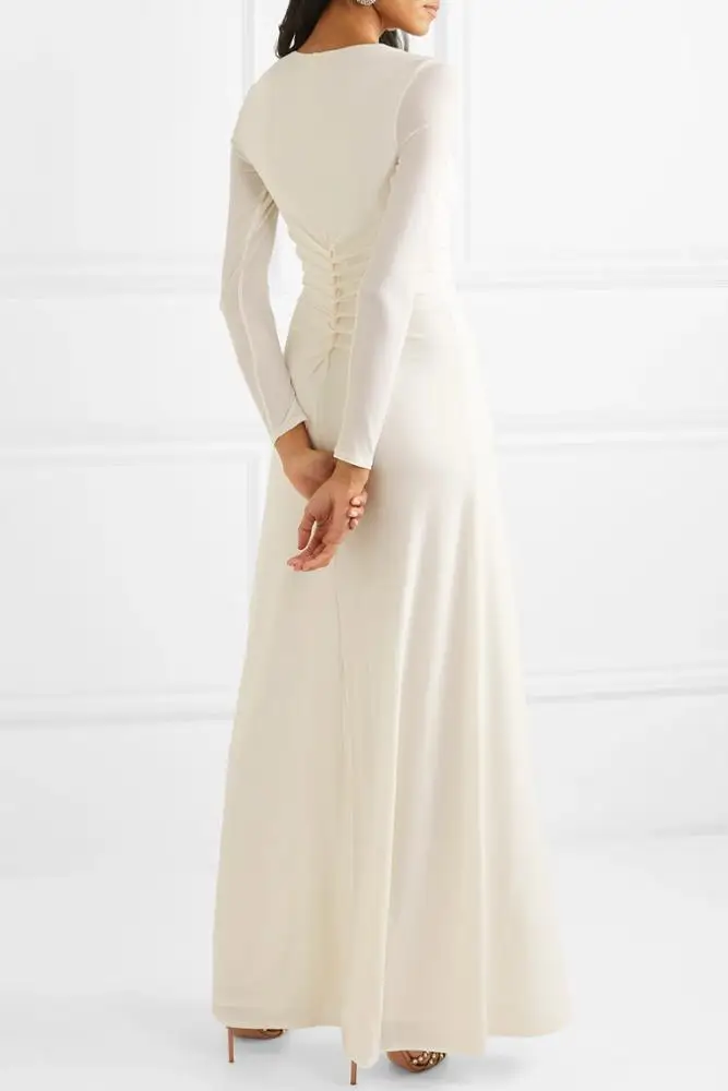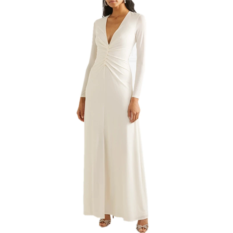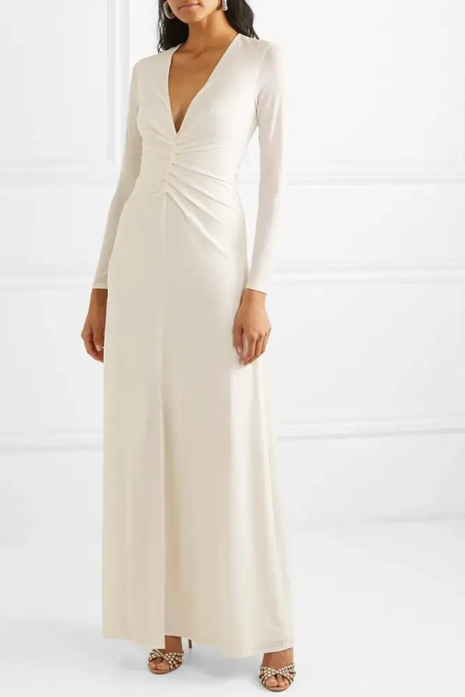 White Wedding Dress Bridal Elegant Fashion Ruched Stretch-jersey Gown Evening Dress