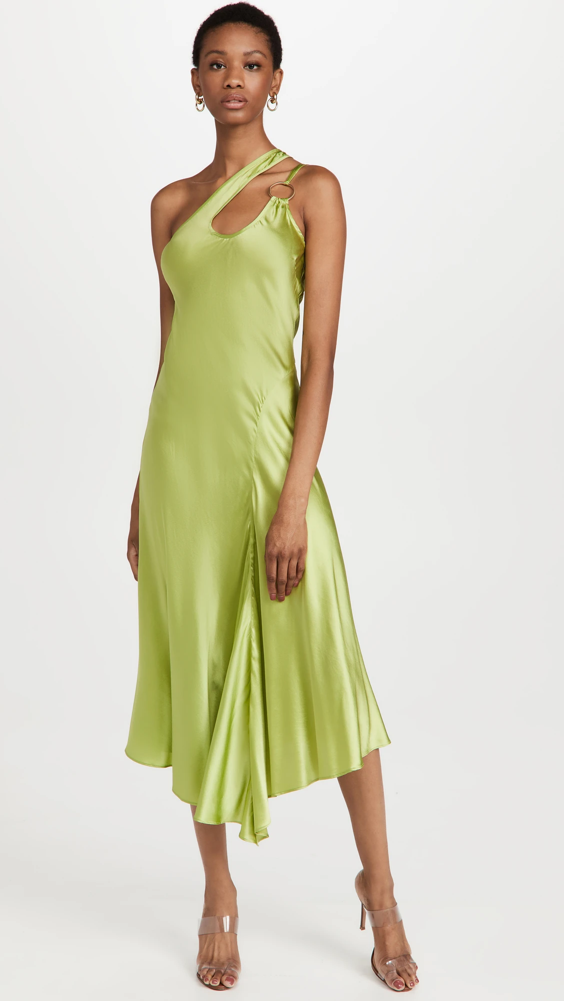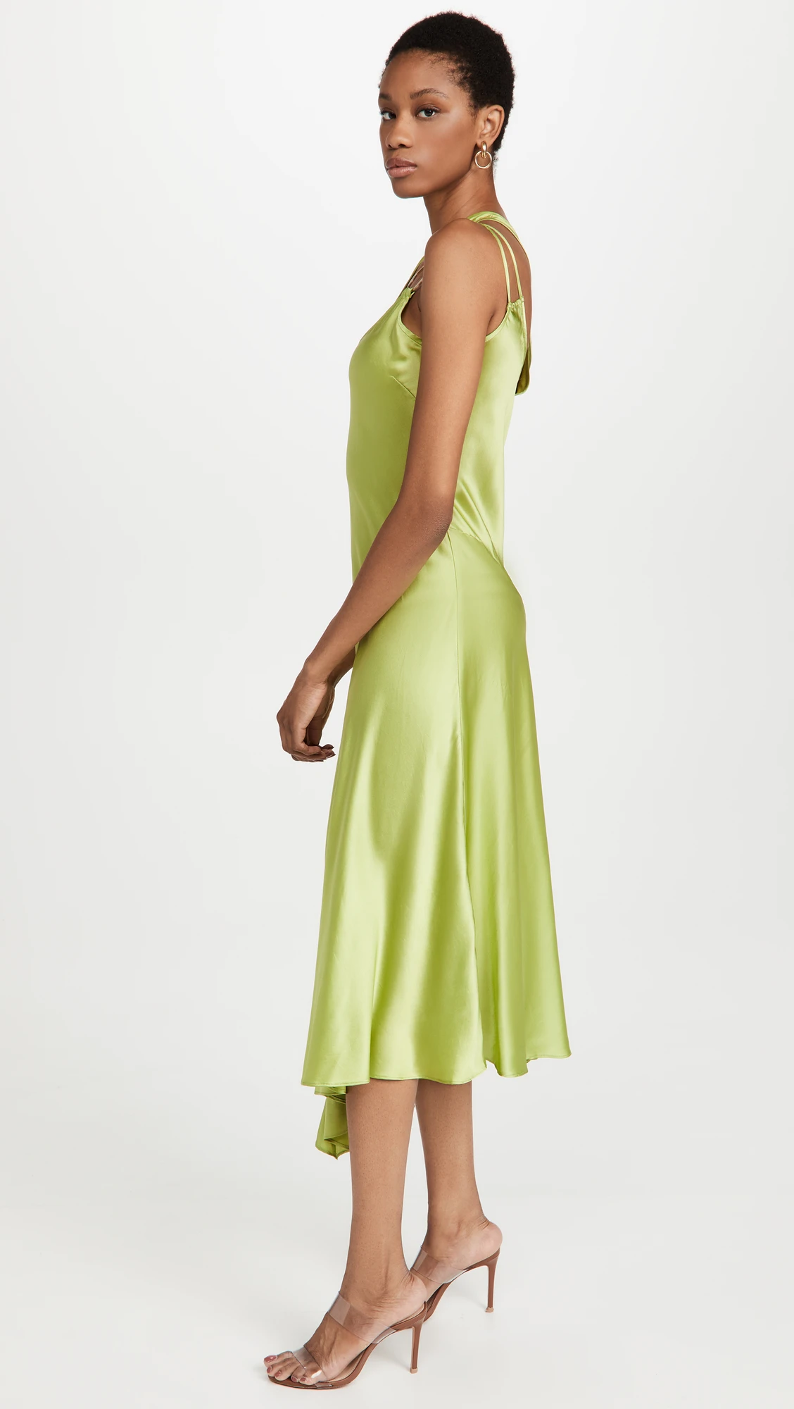 Custom Fashion Green Women Clothing Lady Elegant Evening Party Casual Sleeveless Silk Sexy Asymmetrical Midi Dress