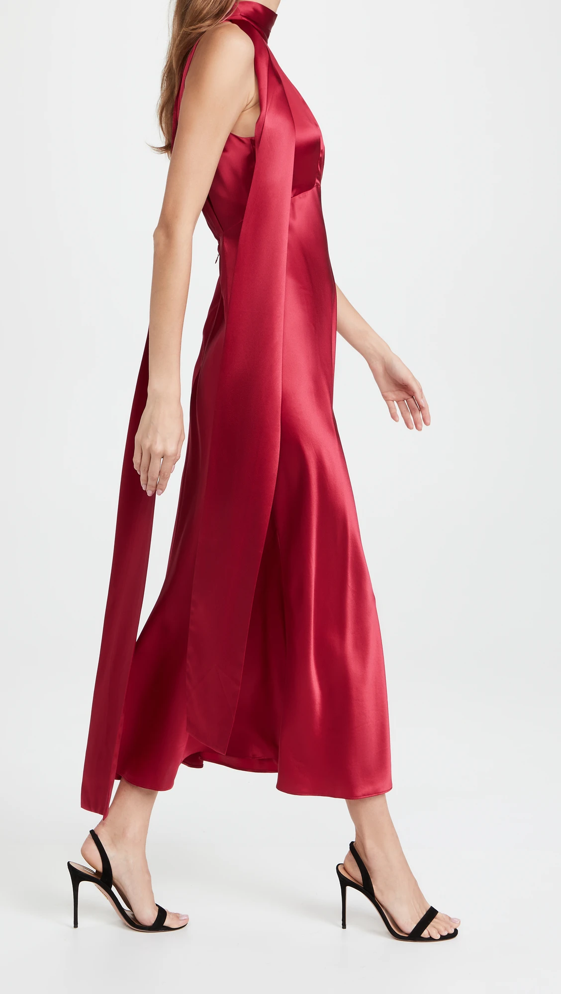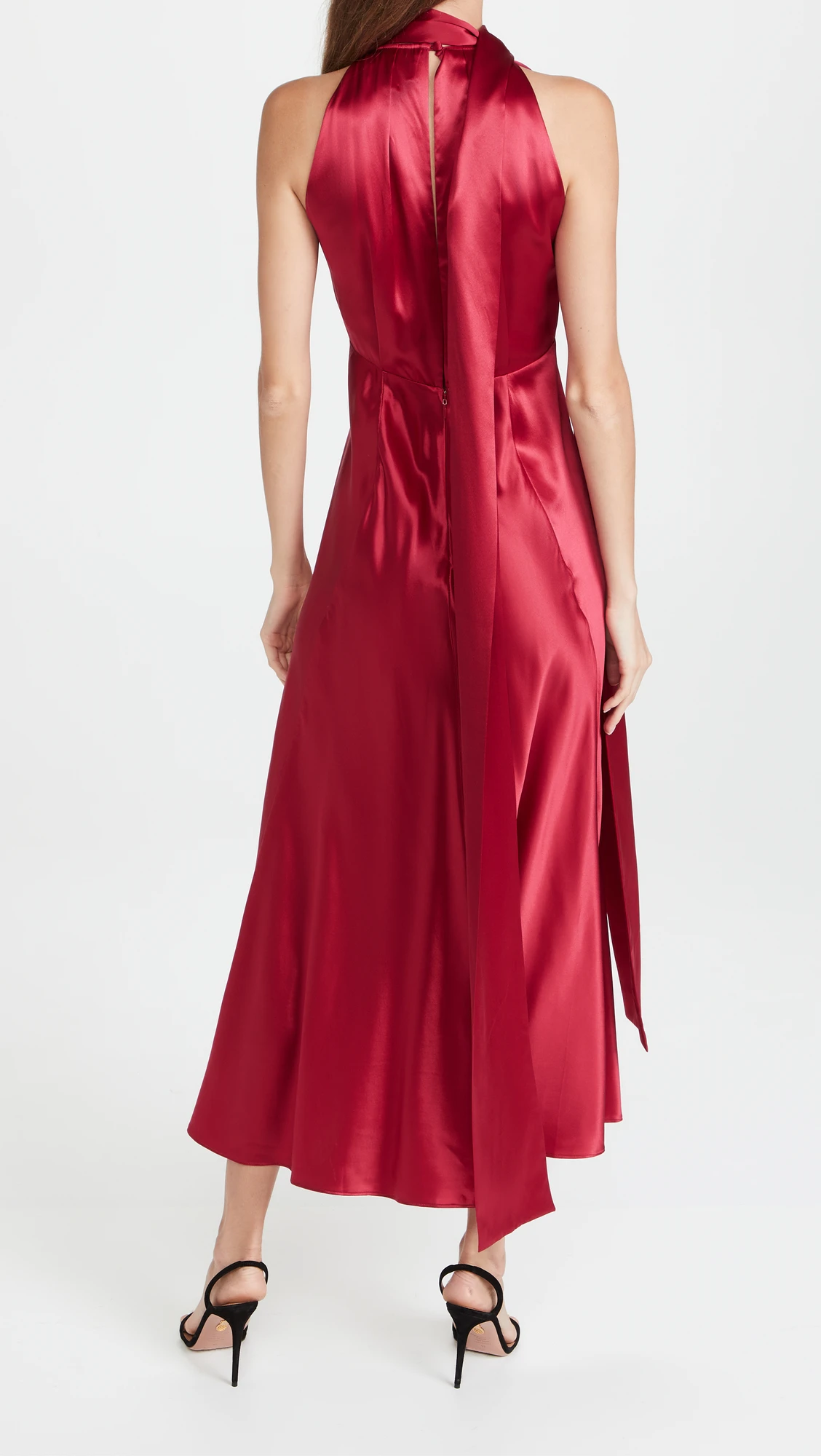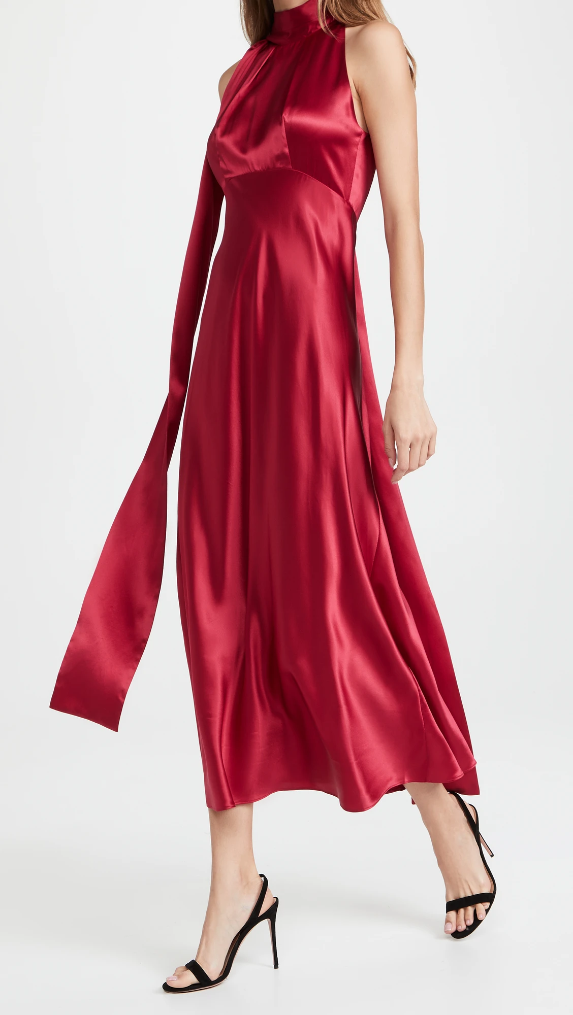 Women's Clothing Solid Color Sexy Midi Dress Halter Lady Elegant Women Evening Dresses Casual Red Satin Dress