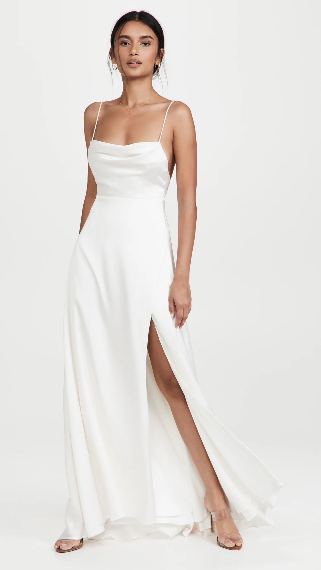 Custom Elegant Cami Side slip Cowl Neck Solid Color Backless Lady Casual Maxi Sleeveless Satin Dress Women