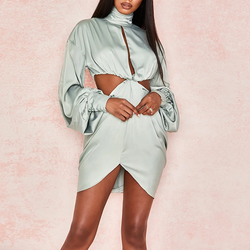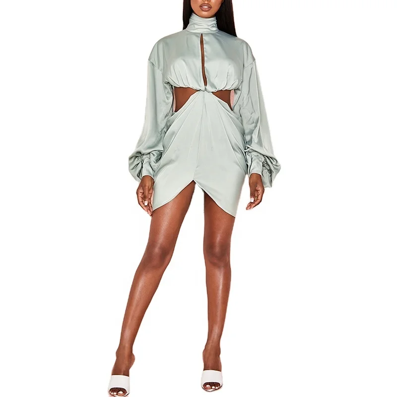 ZYHT 73902 Dark Green Blue Long Sleeve Simple Elegant Evening Dress Customize High End Women Clothing Manufacturer