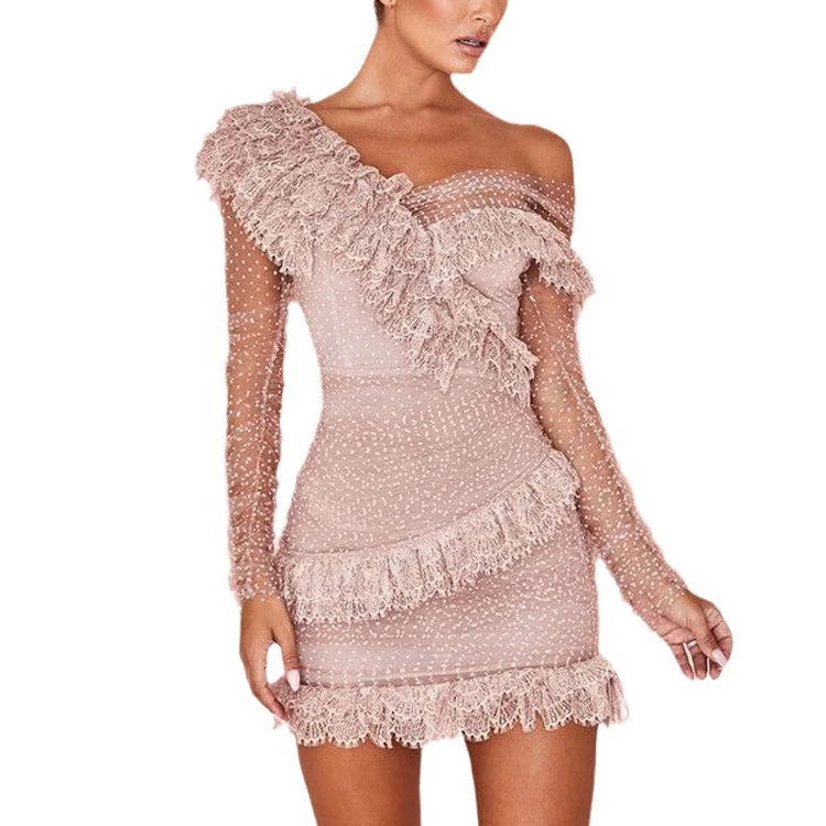Custom Designers Fashion Cute off Shoulder Lace Dot Ladies Luxury Christmas Birthday Party Mini Bodycon Dresses