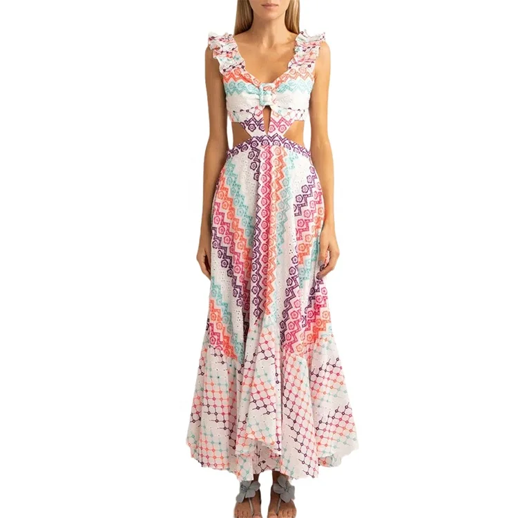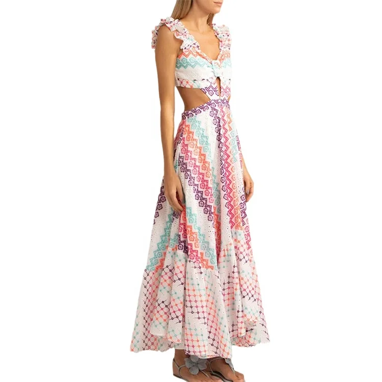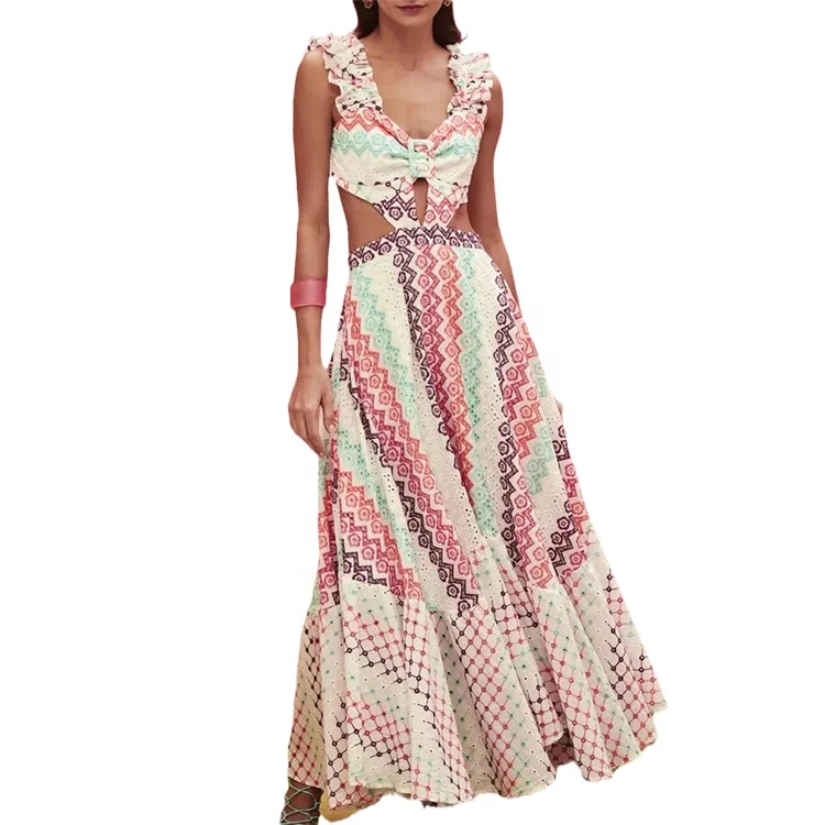 2026 Custom Summer Fashion Sleeveless V Neck Strap Floral Print Long Maxi Dress for Women