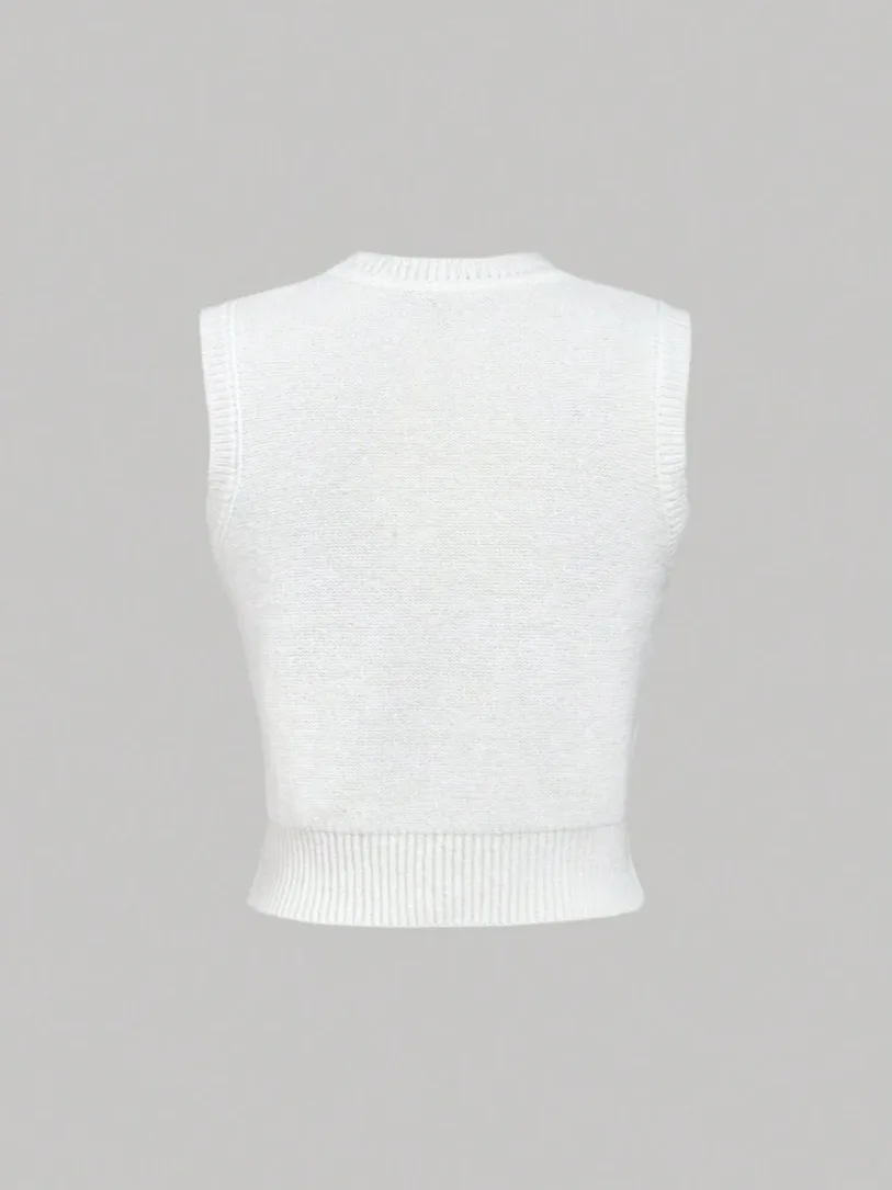Summer Casual Sleeveless Knitted Top with Pleated Stitching New Design Button Decoration Front Logo-Short Length T-Shirt