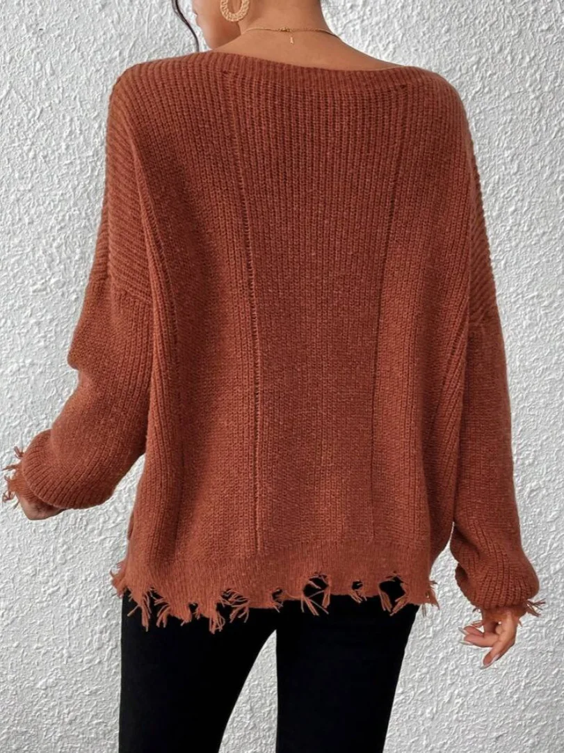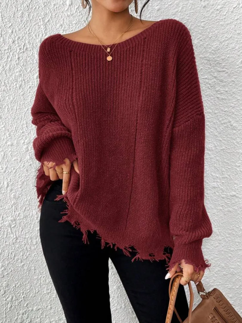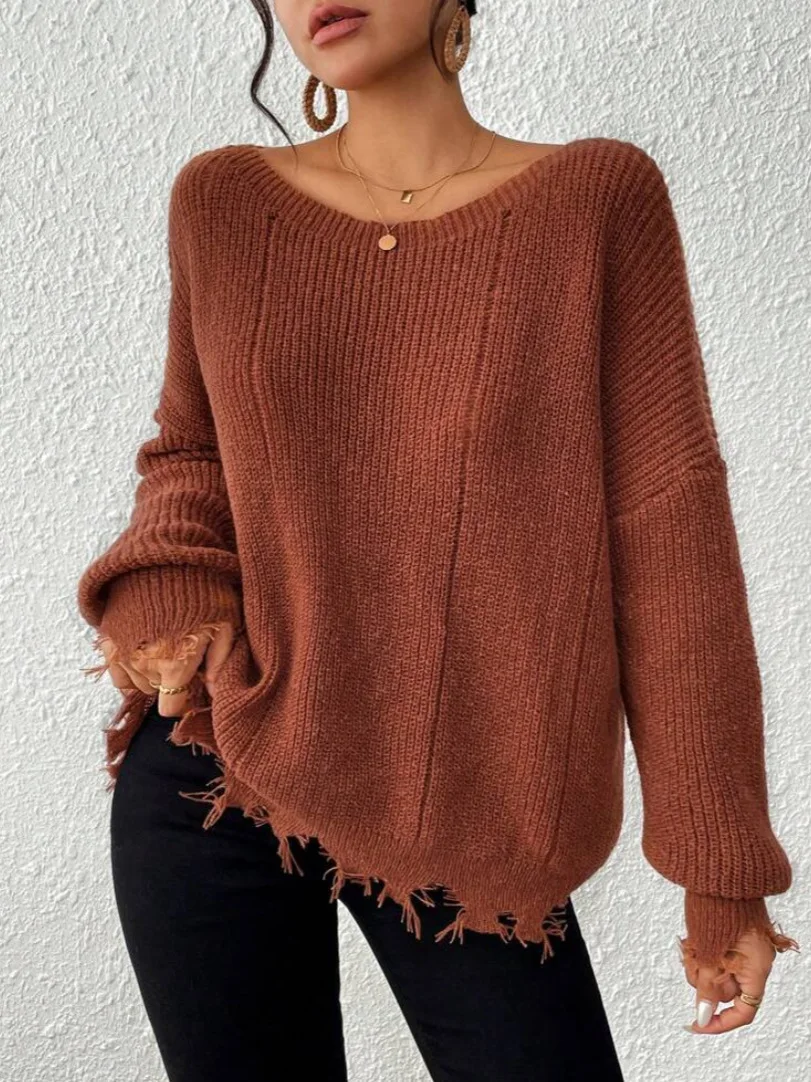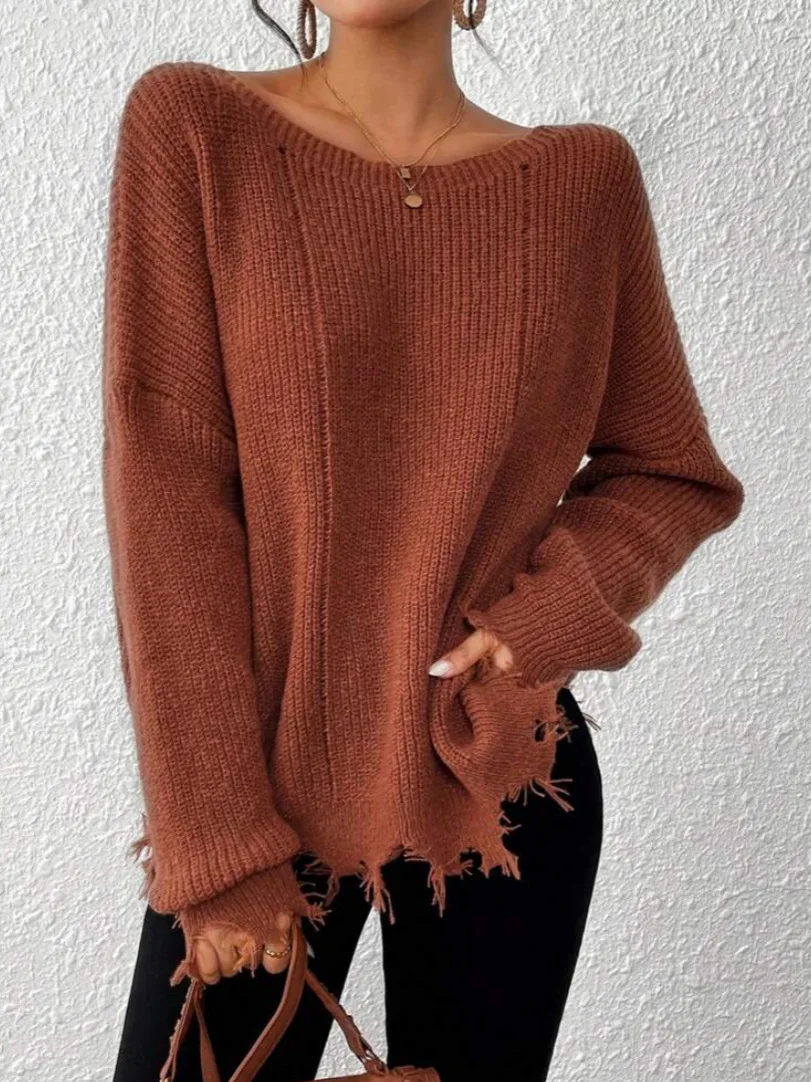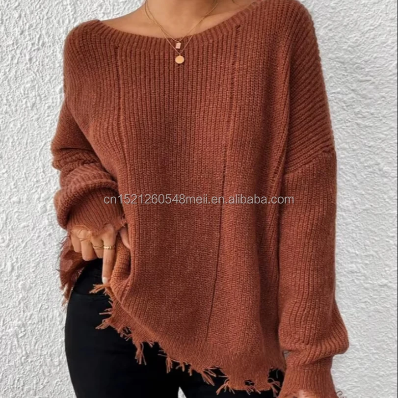 Women's Autumns Fashion Versatile Knitted Pullover Sweater Solid Color Tassels Long for Europe United States Cross-Border Amazon