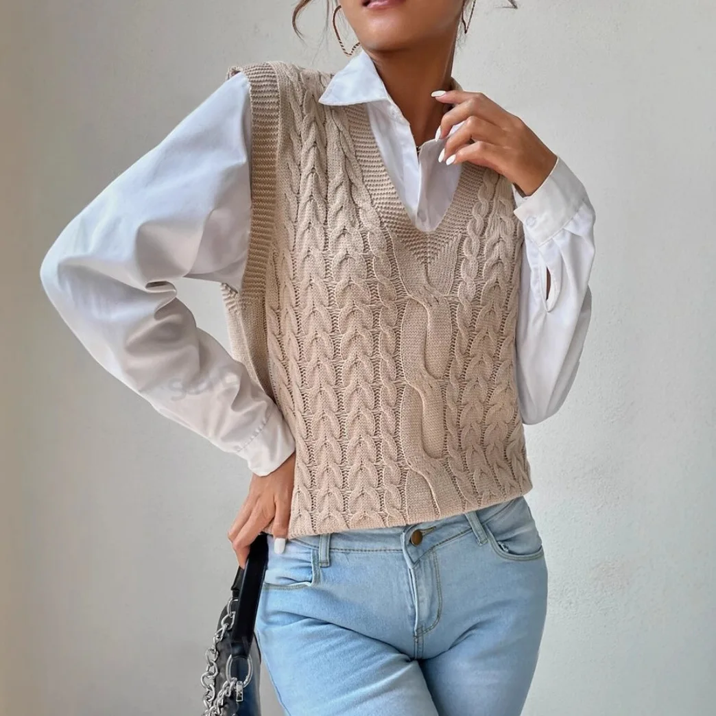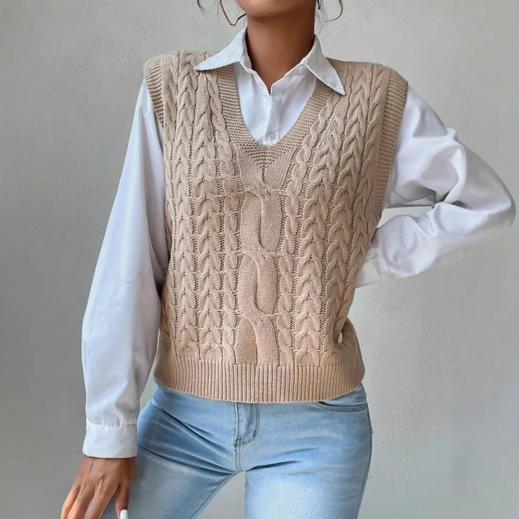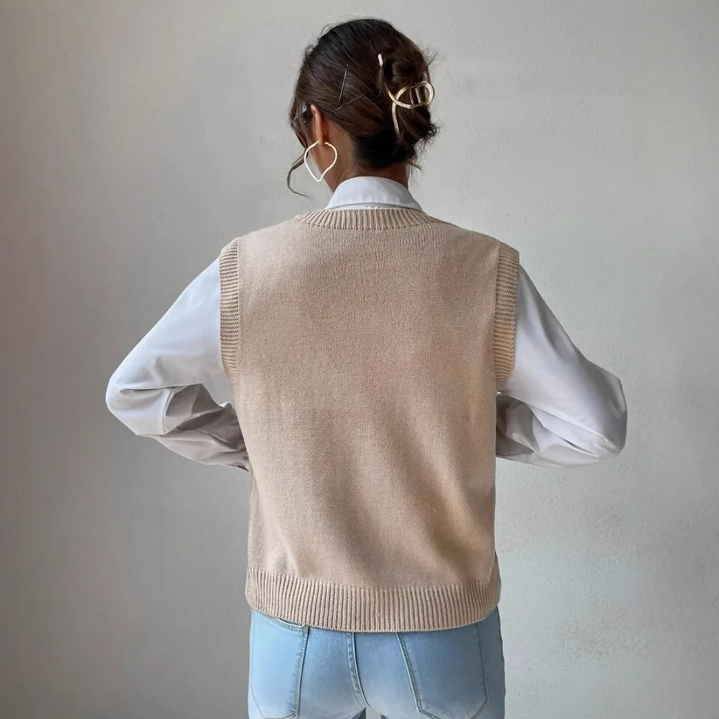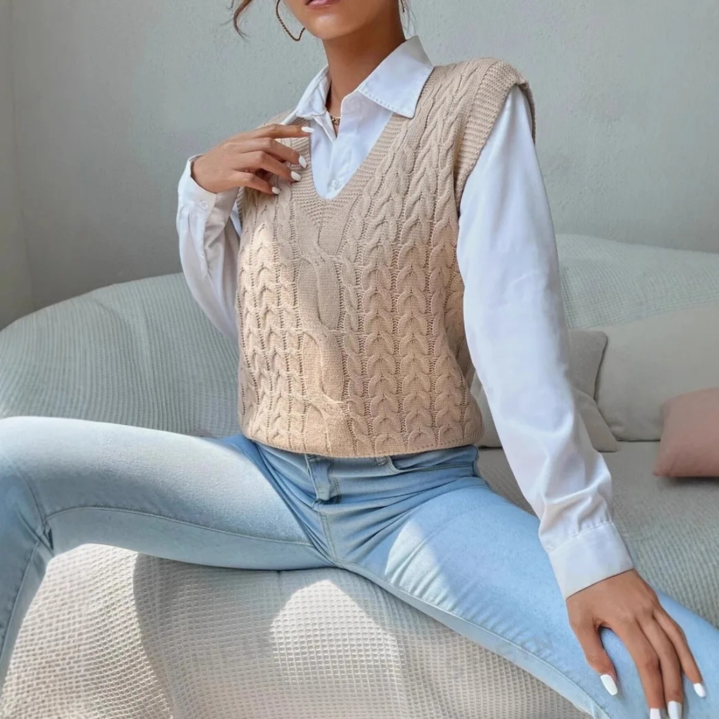 Hot Selling Women's Korean Style Sleeveless Knitted Pullover Sweater Vest Pure Color for Autumn Season