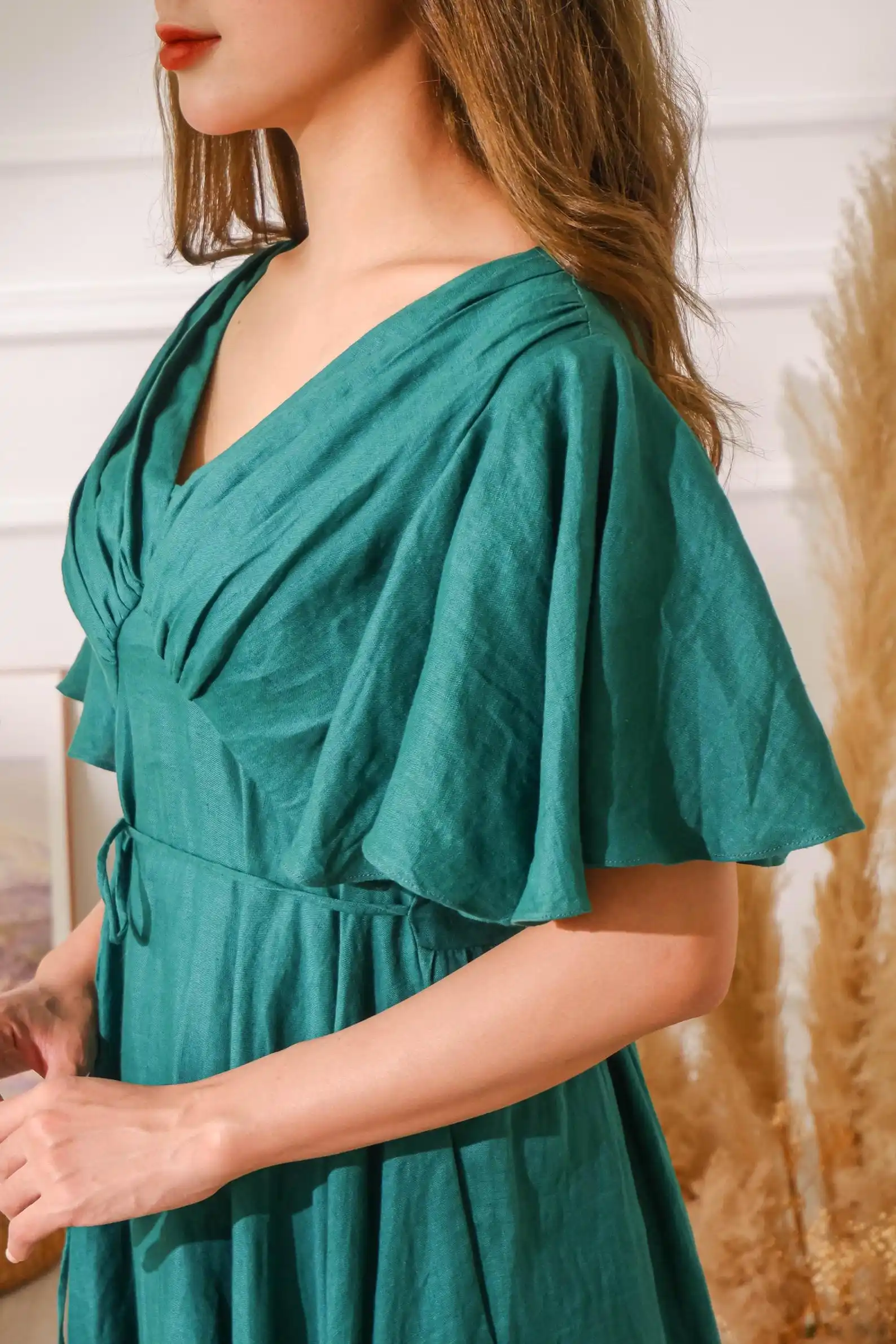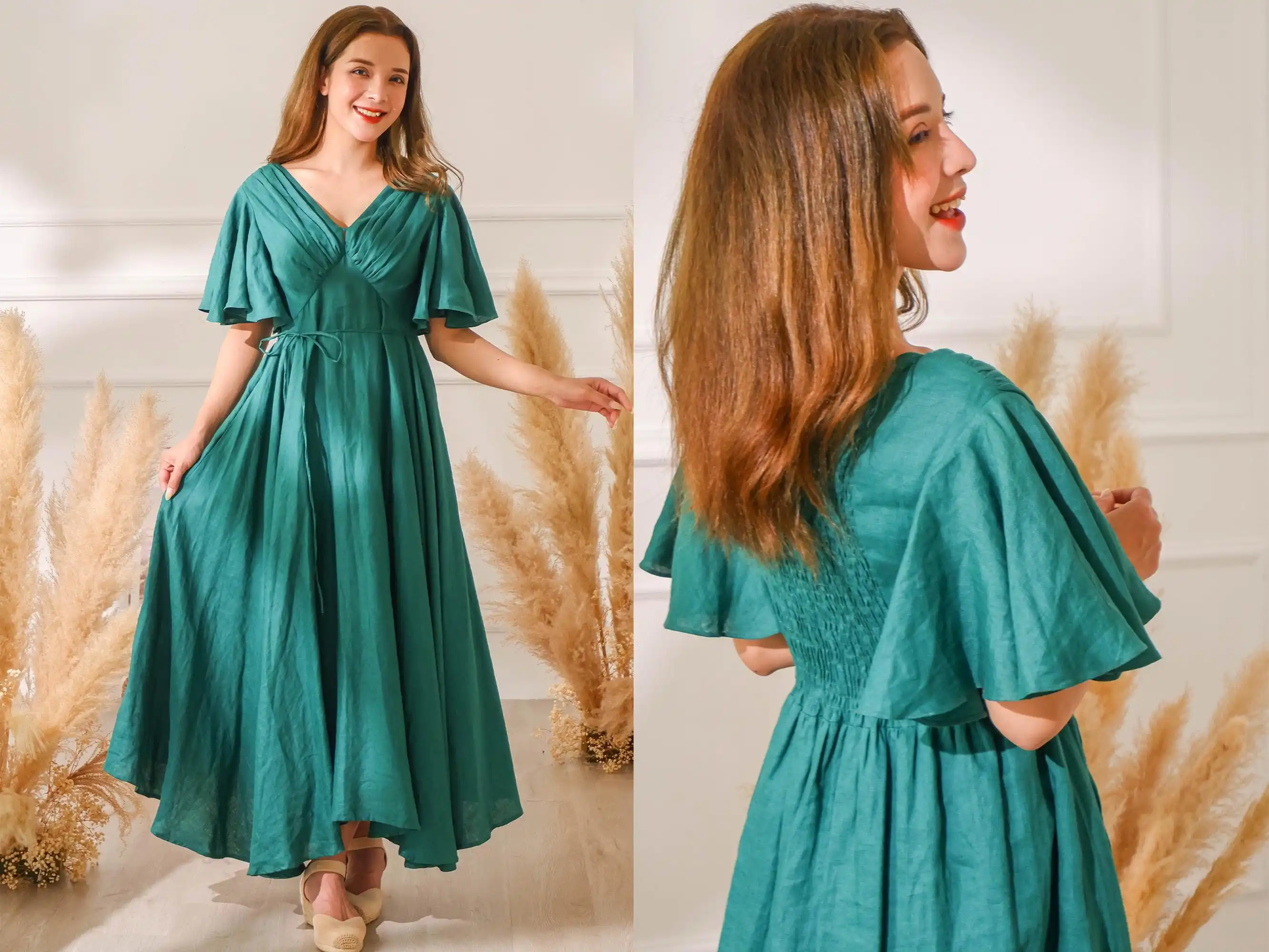 Premium Quality Fashion Customized Linen Dress For Women Deep V Neck Cottagecore Dress Boho Linen Dress Available Big Size