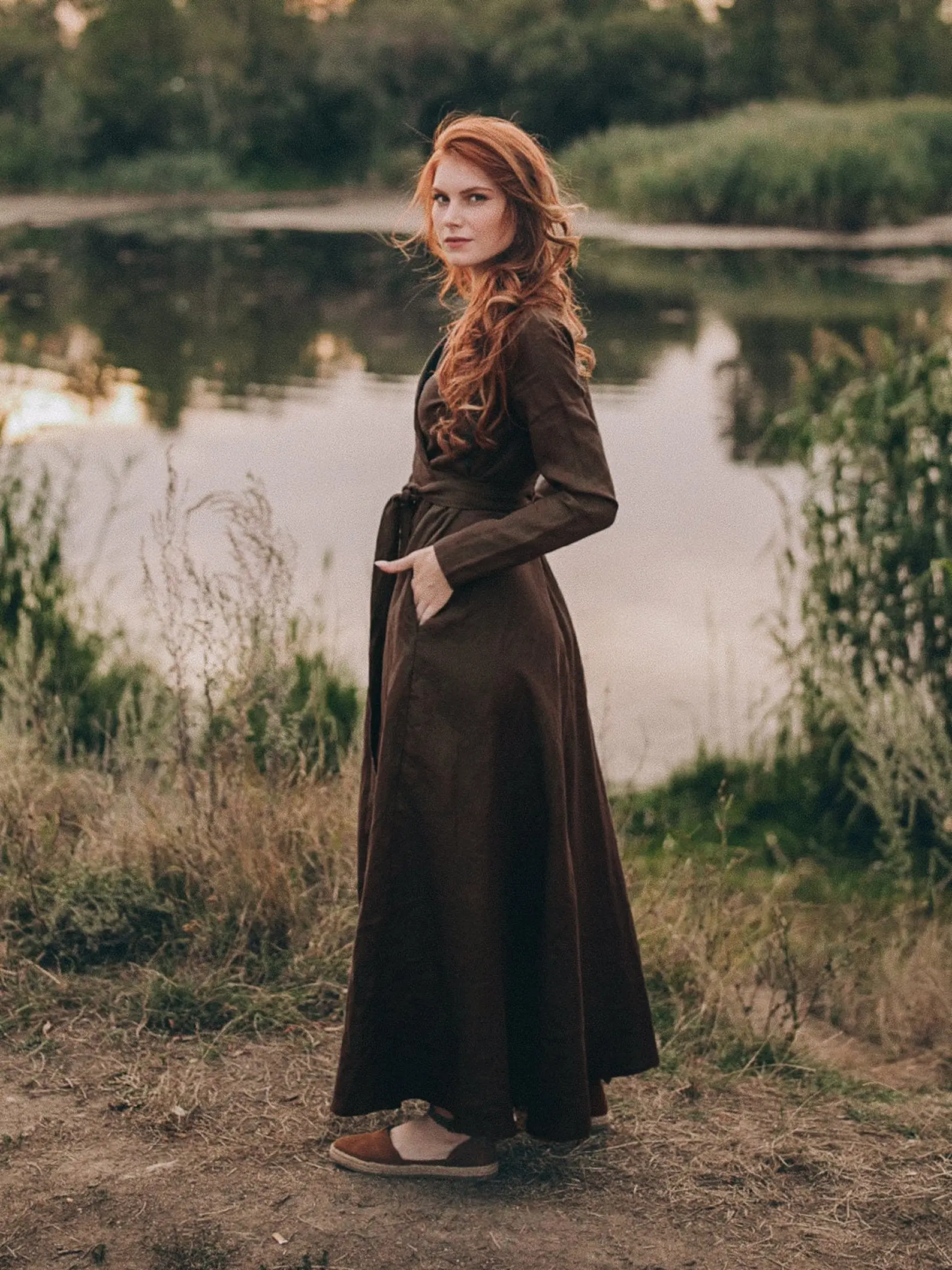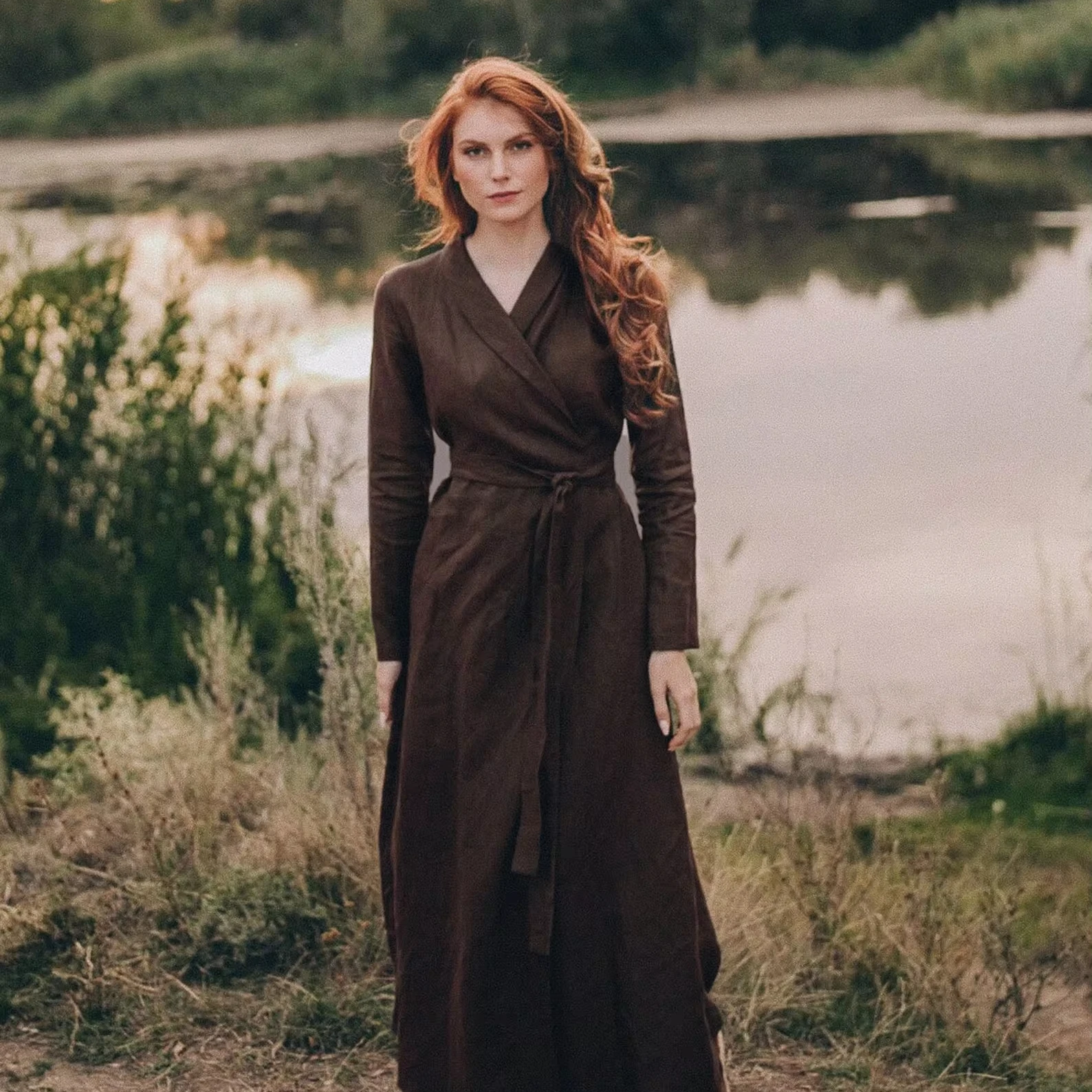 Chocolate Brown Linen Heavy Maxi Long Sleeve With V- neck Maxi Available Big Size Dress Plus Size Linen Dress Boho Kimono Dress