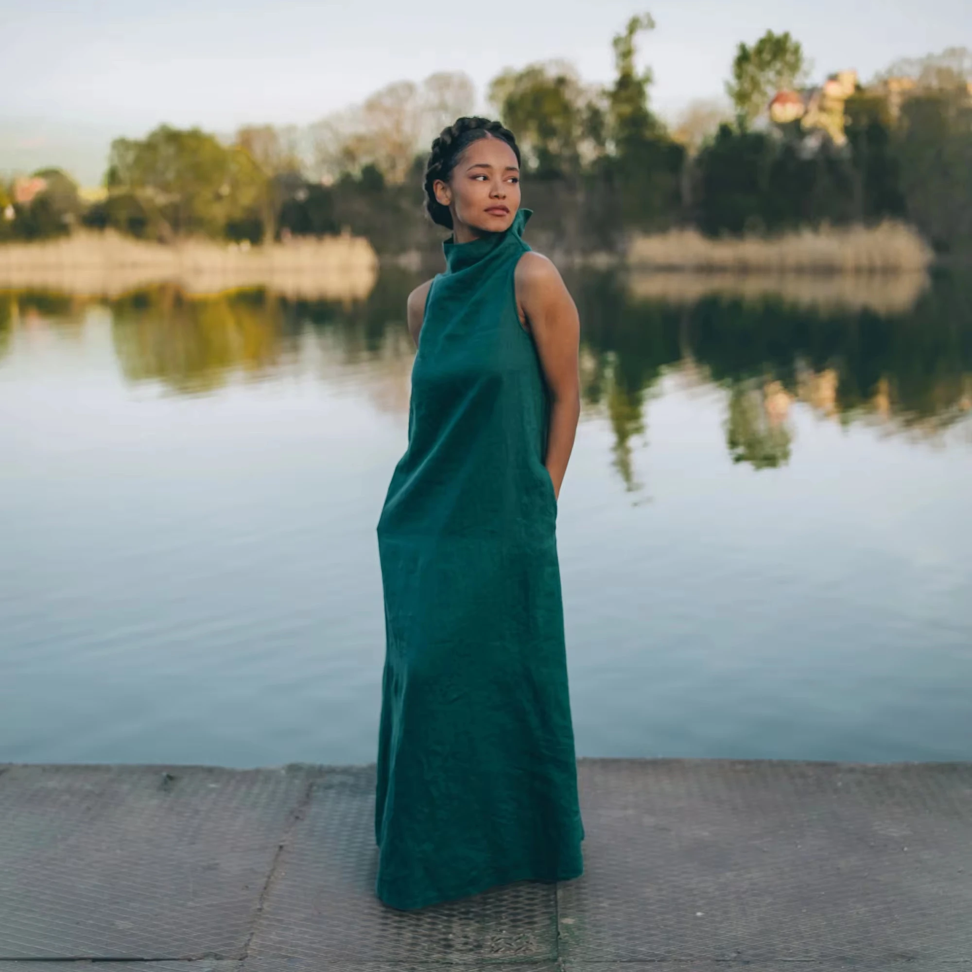 Classic Linen Maxi Dress Summer Long Minimalist Kaftan Style Plus Size Linen Clothing with Classic Designer Kaftan Style Maxi