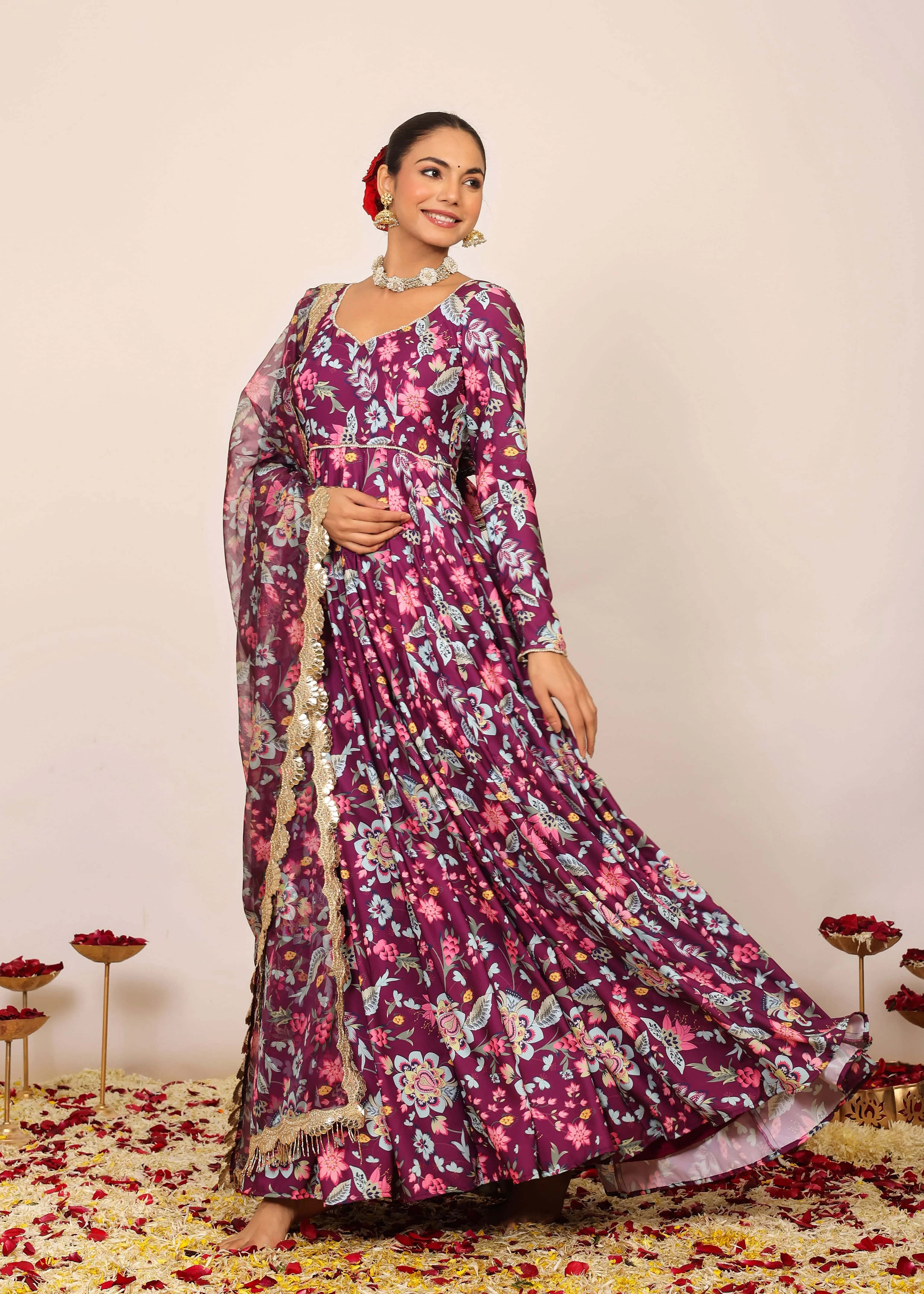 Wholesale High-end Premium Custom Made Country Western Style Clothing Manufacturers Georgette Print Maxi With Dupatta for Women