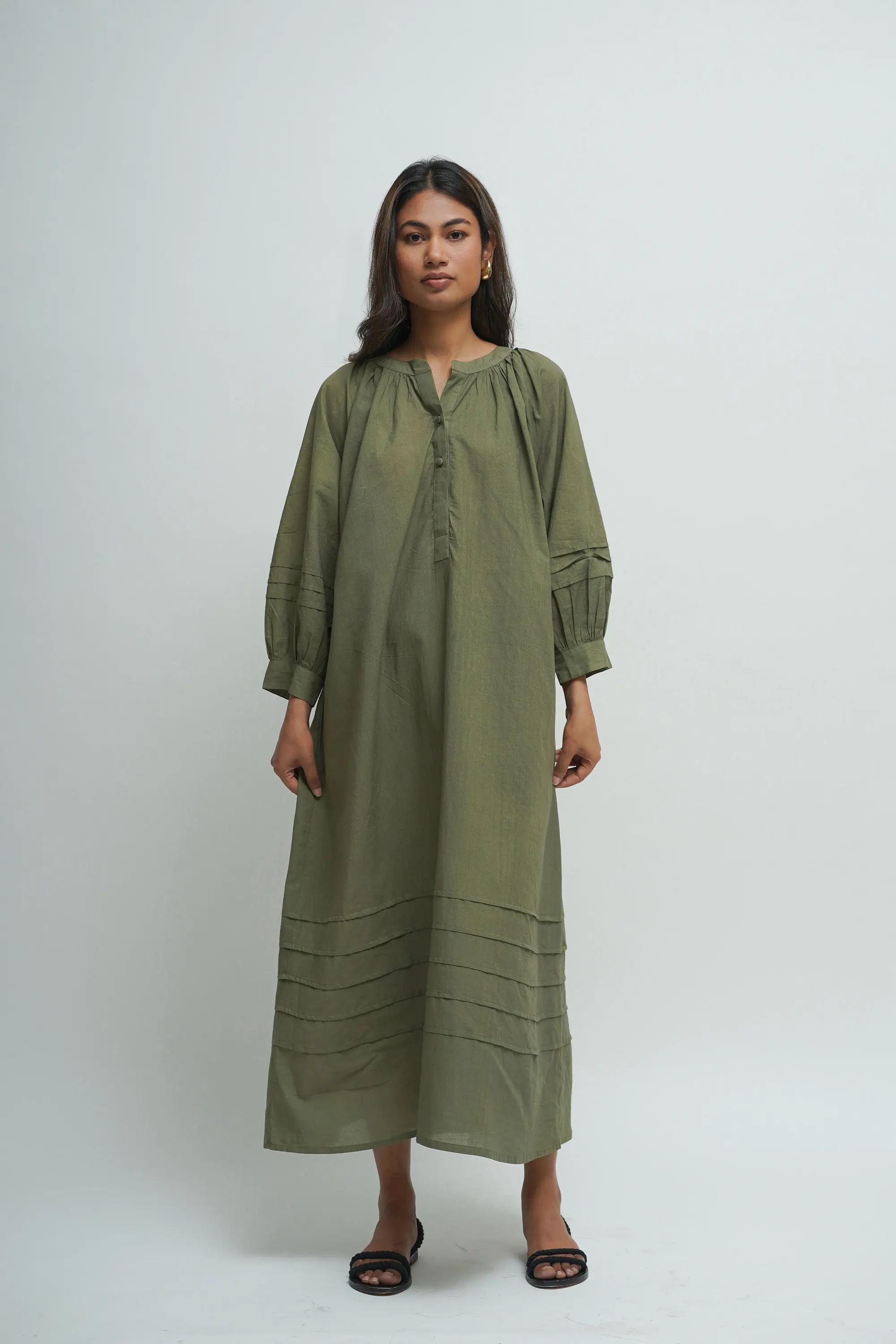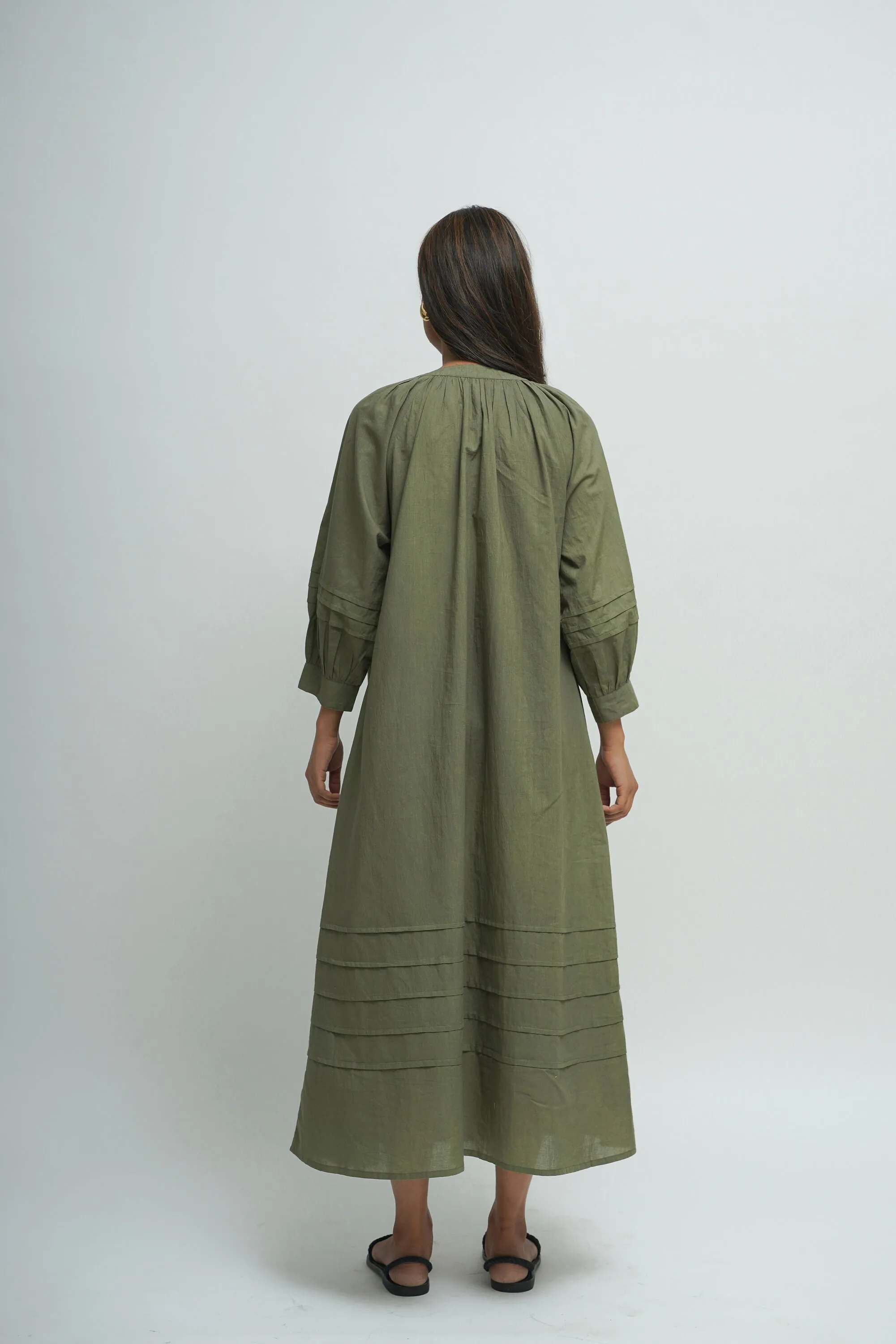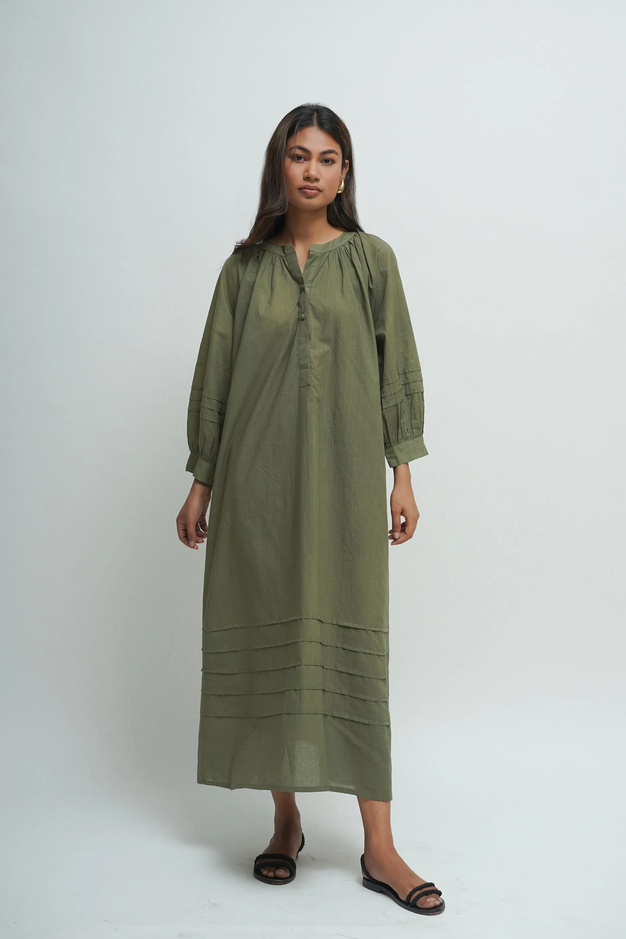 Cotton Comfortable Hand Crafted Green Loose Baggy Maxi Dress Pintex Work Custom Color Tunic Oversized Casual Dress With Pocket
