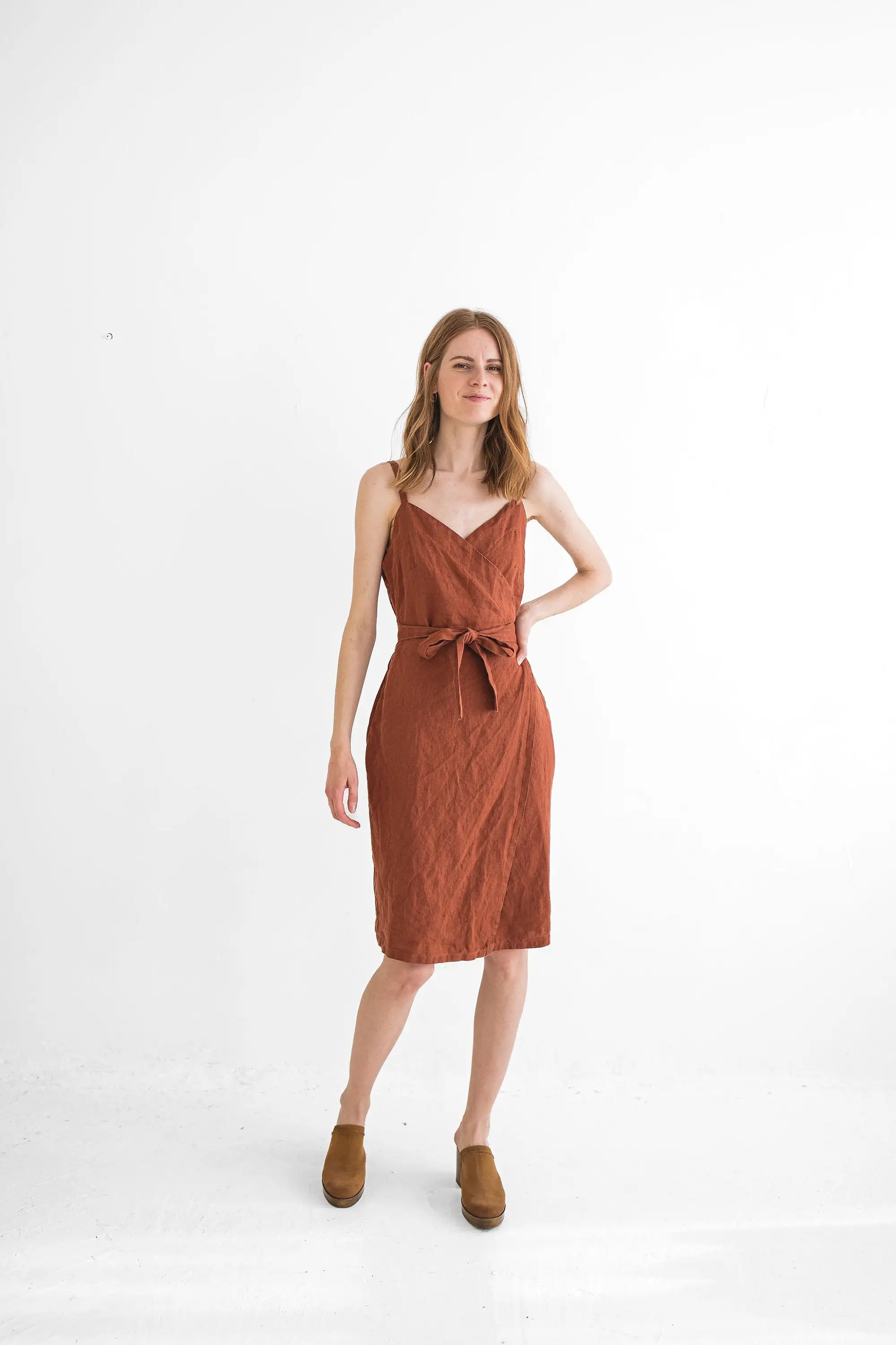 Summer Fashion Elegant Wrap Linen Dress Sleeveless Linen Summer Simple Linen Short Length Beach Dress Women Casual Mini Dress