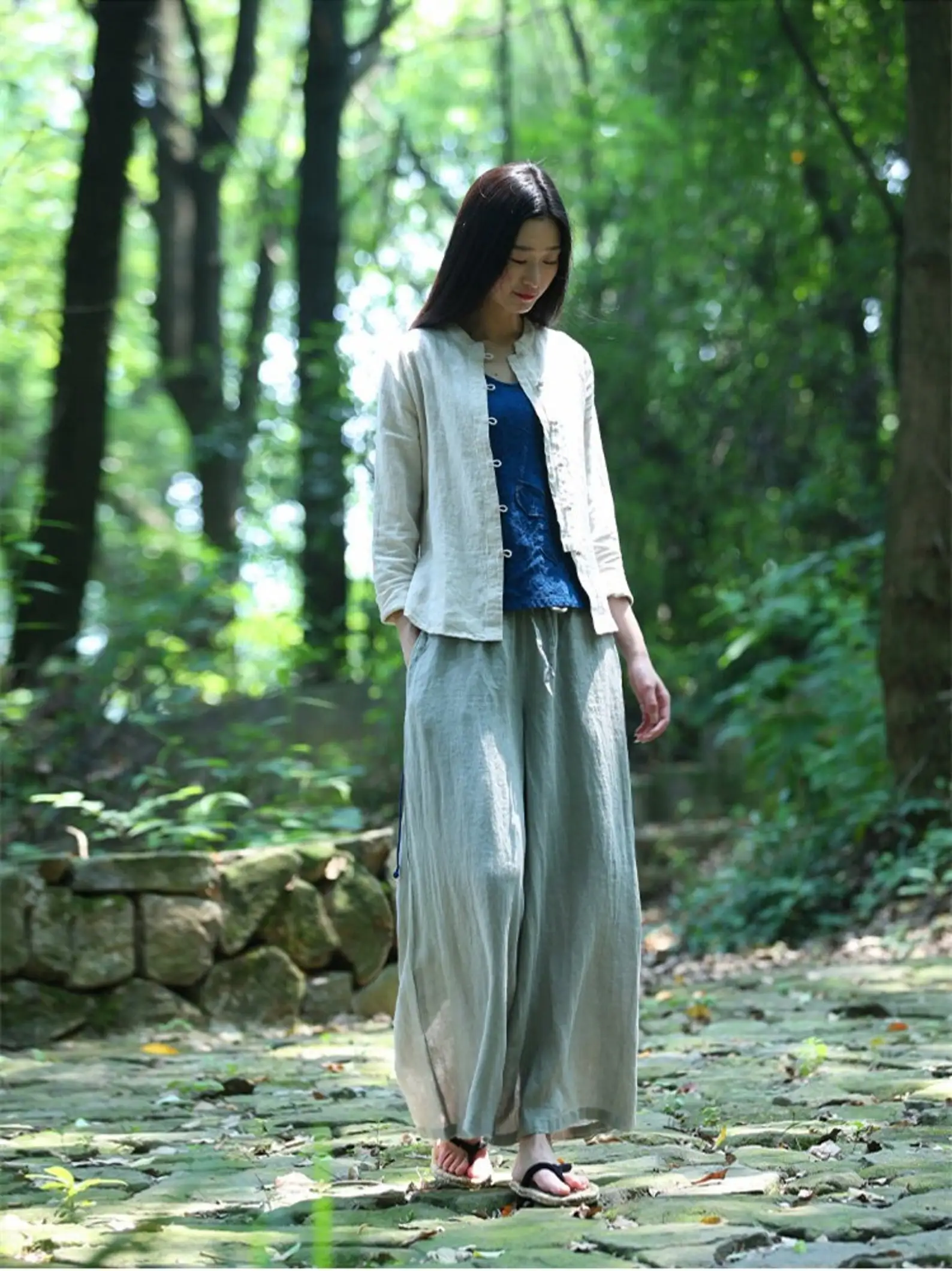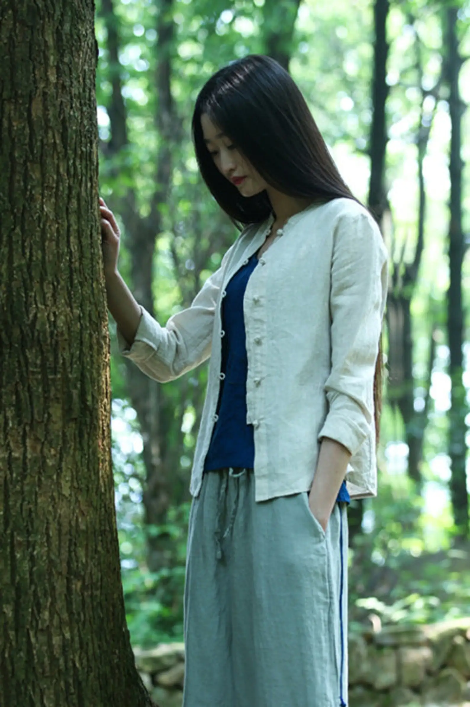 Linen Tank Top Women's Long Sleeve V Neck Sweet Breathable Eco-Friendly Summer Style Available Big Size