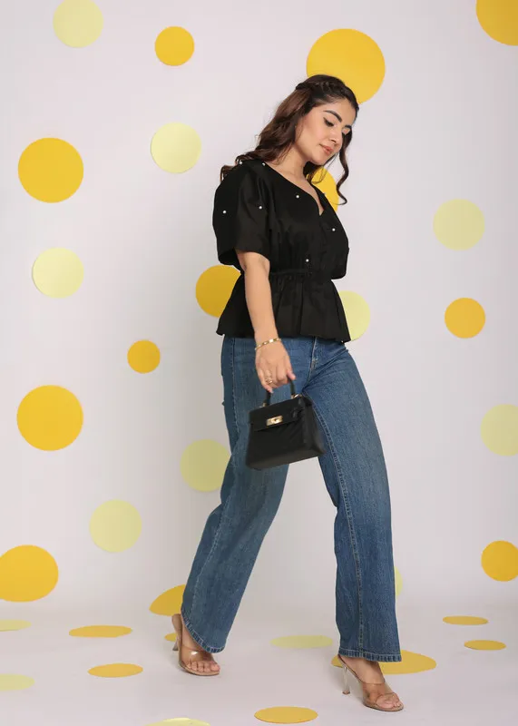 Casual Summer Classic Linen/Cotton Peplum Tank Top Solid Relaxed Fitted Black Pearl Bow Decorated Waist White Big Size Quick Dry