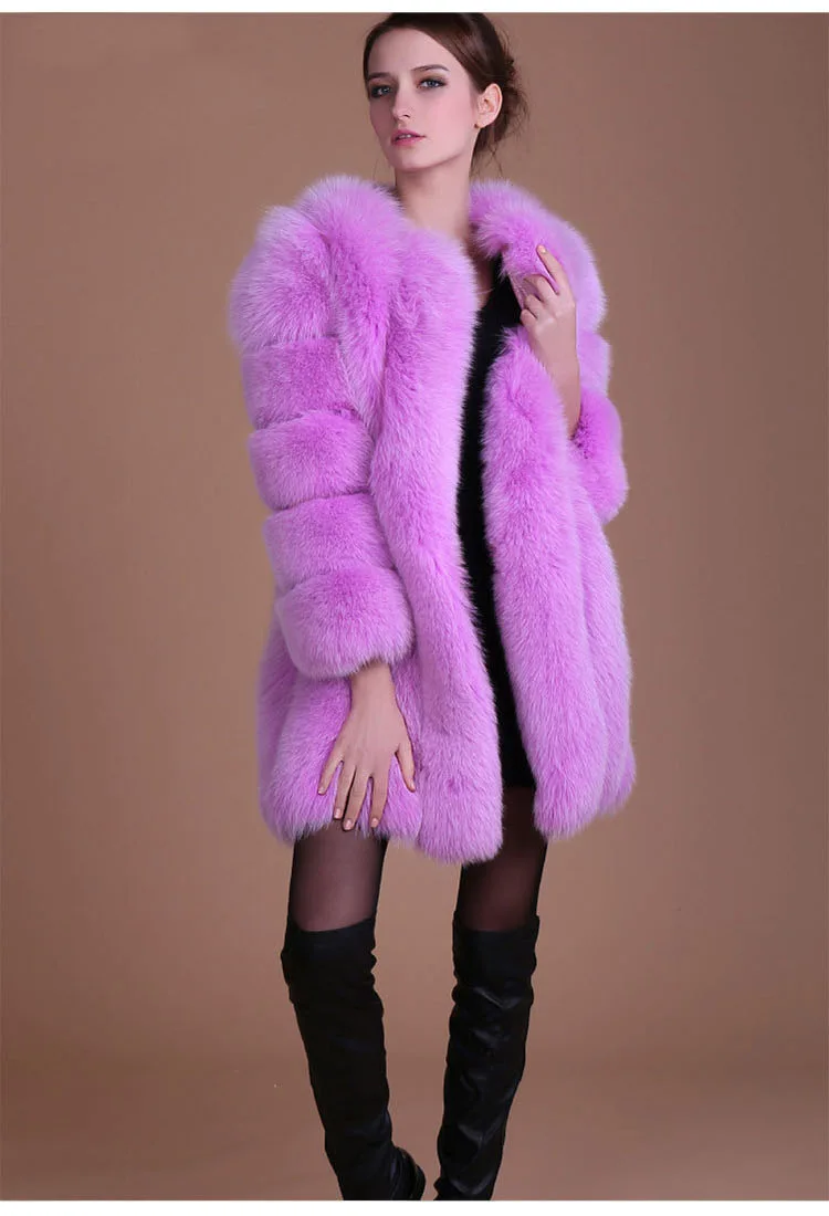 Faux Fur Coat Women New Autumn-winter Fox Fur Medium Length Faux Fur Coat in Stock