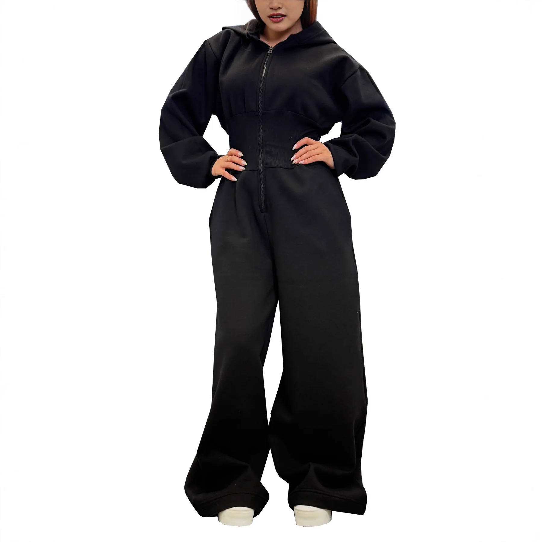 2025 Custom LOGO Women Jumpsuits Autumn Winter High Waist Sports Jumpsuit Women Zipper Hooded Sweatshirts Overall