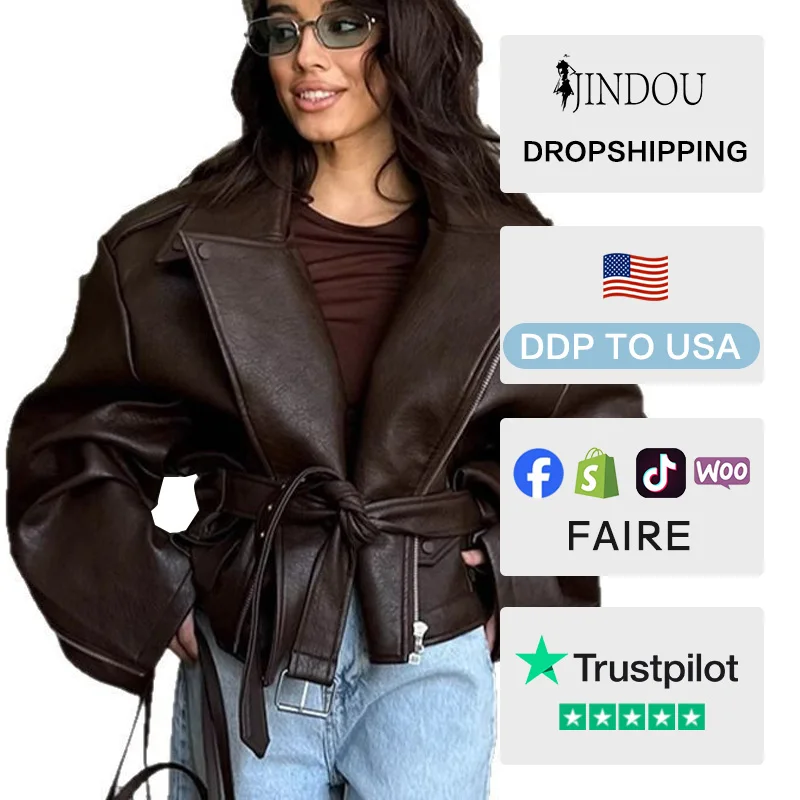 Winter Women's Short Jacket with Single Covered Button Closure Warm Fluffy American Motorcycle Style