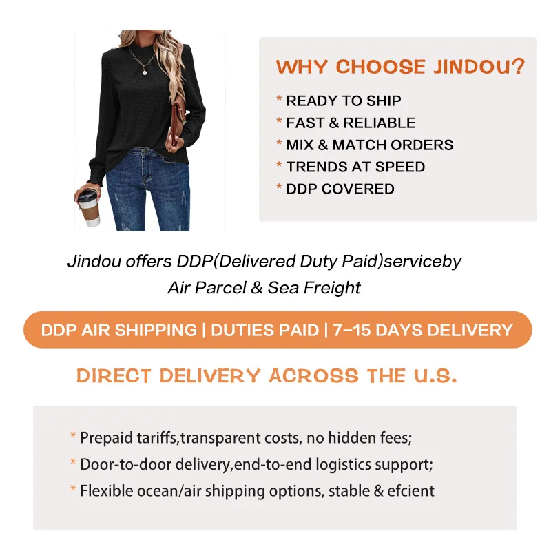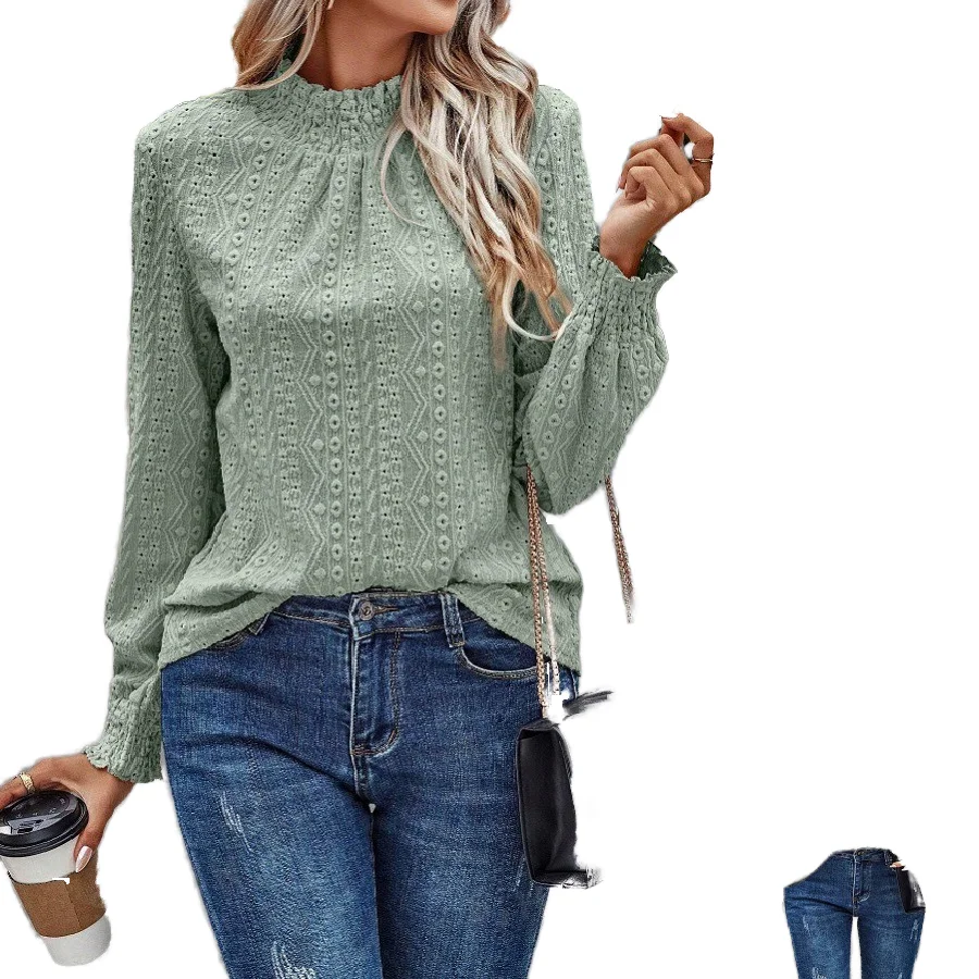 Women's New Arrival Spring Solid Breathable Casual Jacquard Crew Neck Long Sleeve Polyester Blouse
