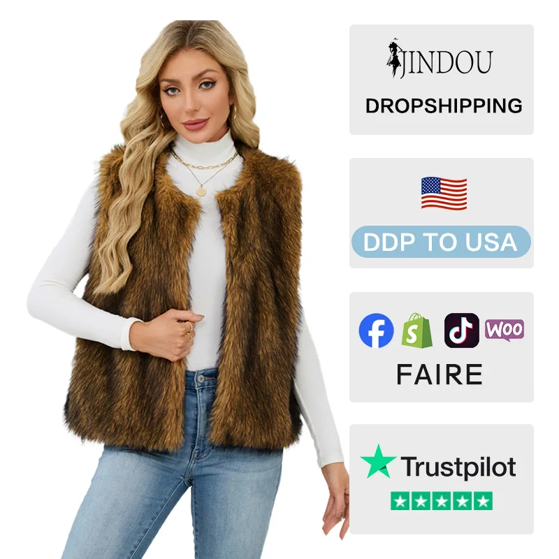 Hot Sale Women's Clothing Faux Fur V-neck Sleeveless Solid Color Women's Vest Artificial Fur Long Fur Jacket Trend Vest