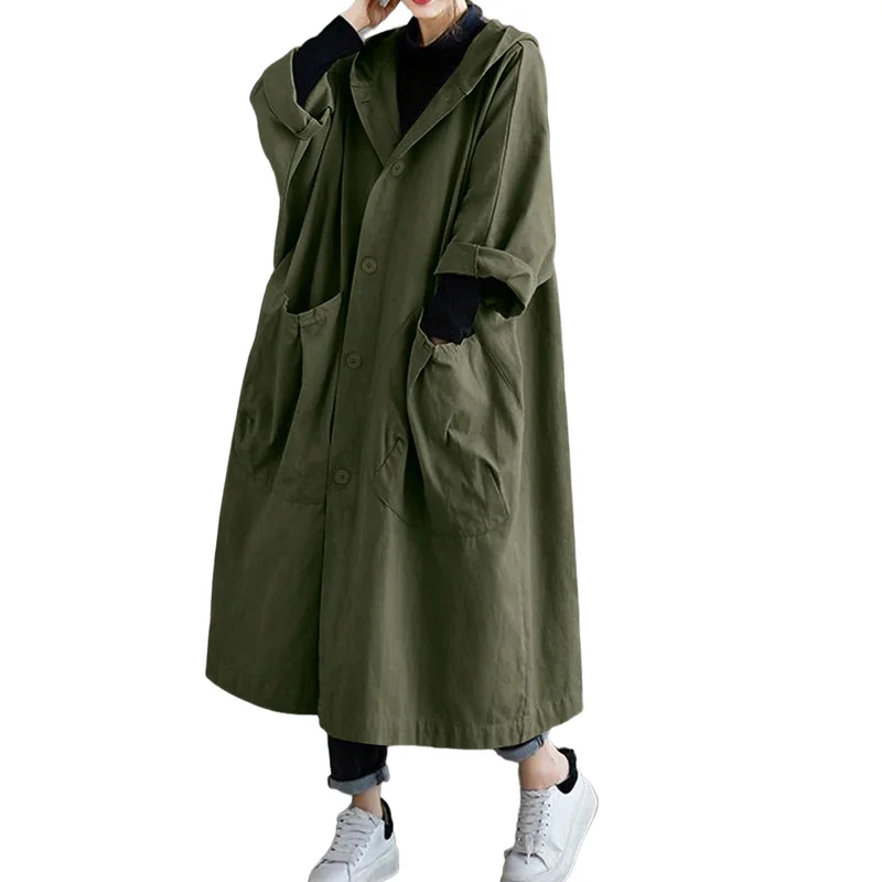 2026 Women's High-quality Spring Elegant Solid-color Loose Single-button Warm and Windproof Coat Hooded Casual Coats