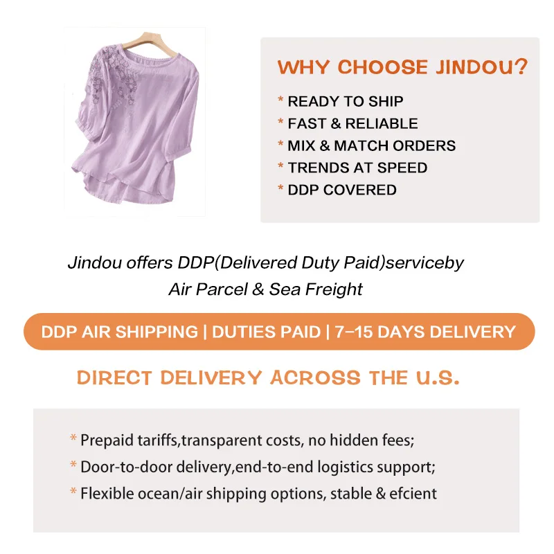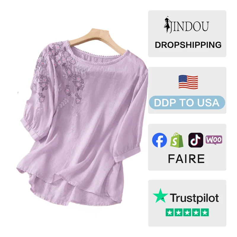 2026 Latest Summer Women New Embroidered Floral Three Quarter Sleeve Top Ladies Elegant Round Neck Casual Tops