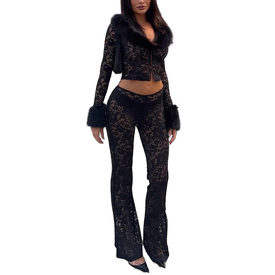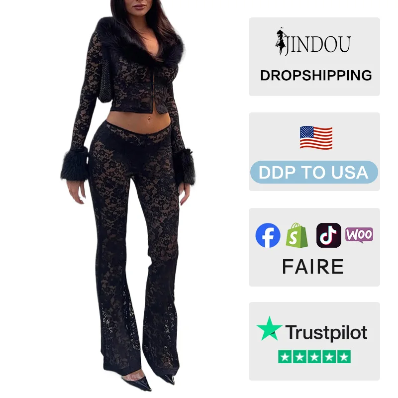 European American Cross-Border Autumn Winter Women's Fashion Two-Piece Set Sexy O-Neck Short Top Eco-friendly Skinny Fit Long