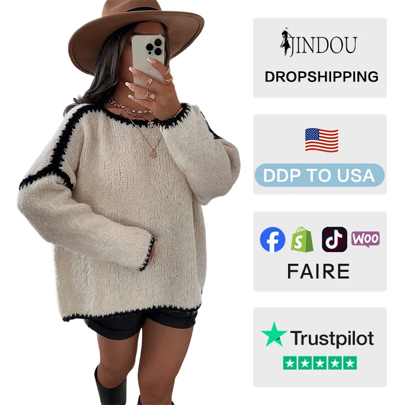 Autumn/Winter Women's Vintage Front Logo Anti-Wrinkle Soft Pullover Long-sleeved Casual Knitted Sweater