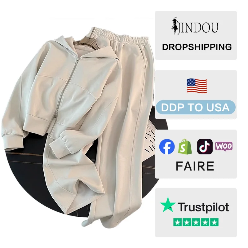 European Sportswear Fashion Foreign Trade Women's Casual Long Sleeve Cotton Zipper Regular Slimming Fashionable Sweatshirt Set