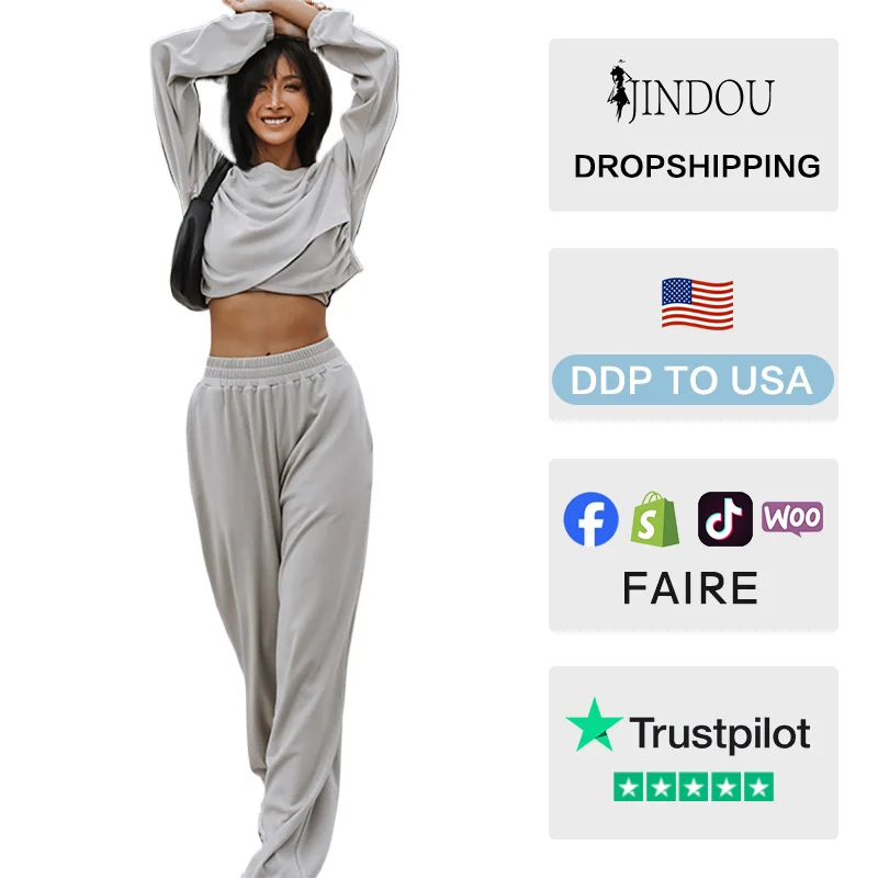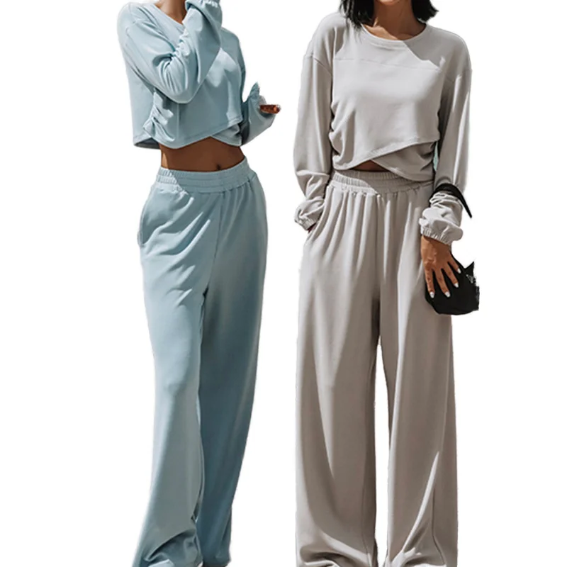 Top Sale Winter Solid Loose Sport Hoodie Sweatshirt 2 Piece Long Set O Neck Regular Tops Thin Wide Leg Pants