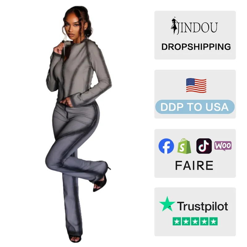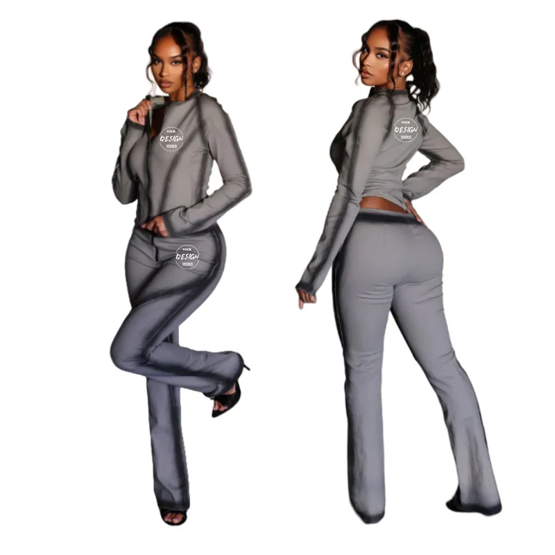 Custom Logo 2026 New Printed Women Loungewear Knit Outfits Long Sleeve Printed Bodycon Women Two Piece Sweatsuits