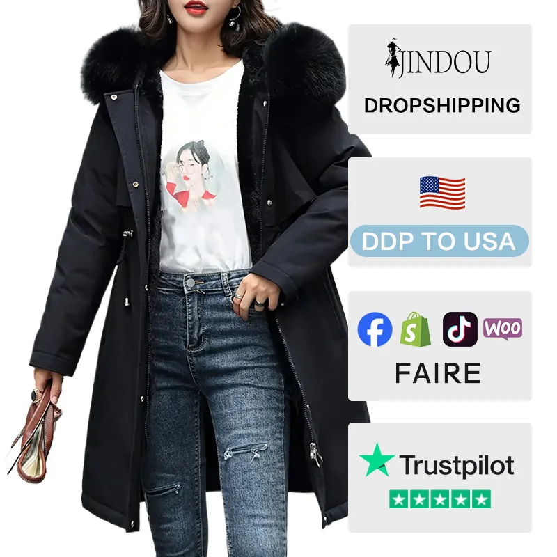 Winter Women's Long Coat Faux Fur Hooded Parka Clothing Black Thick Women's Warm Coat