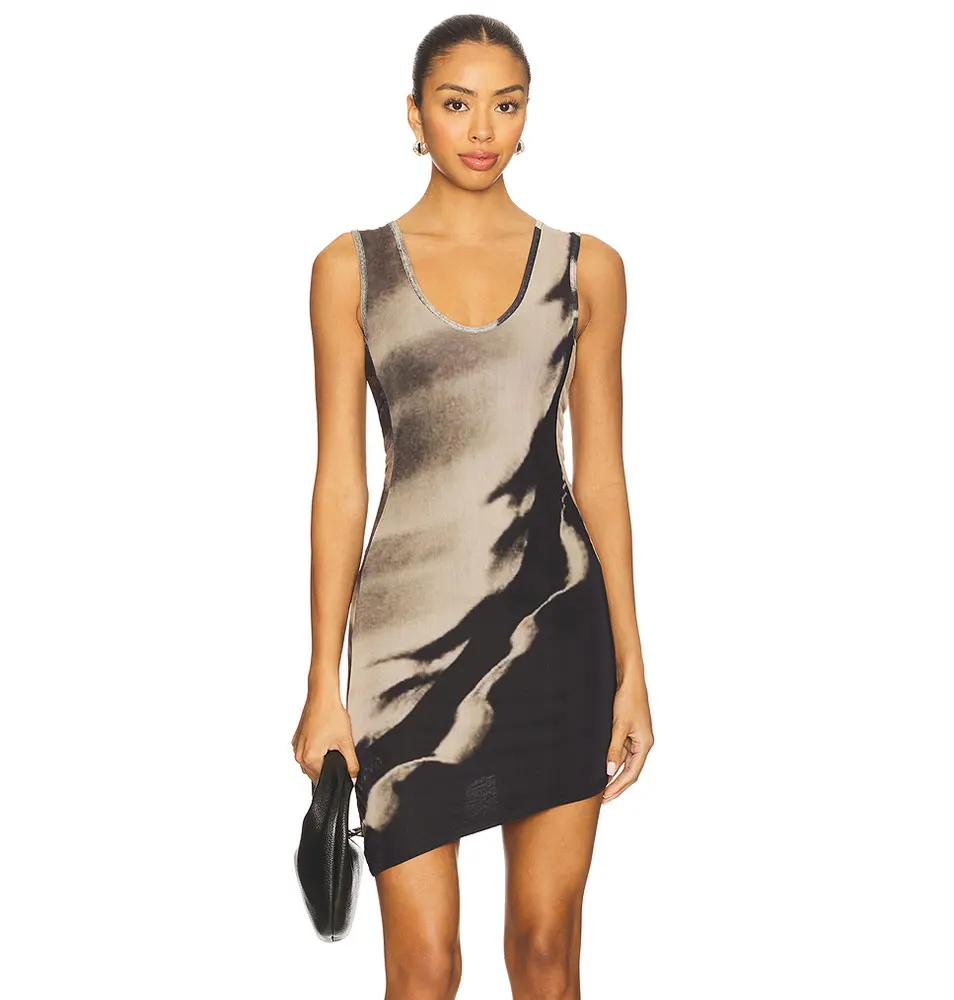 Customized Mesh Double Layer Print Sexy Bodycon Mini Dress Summer Party Short Dress