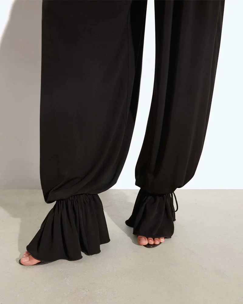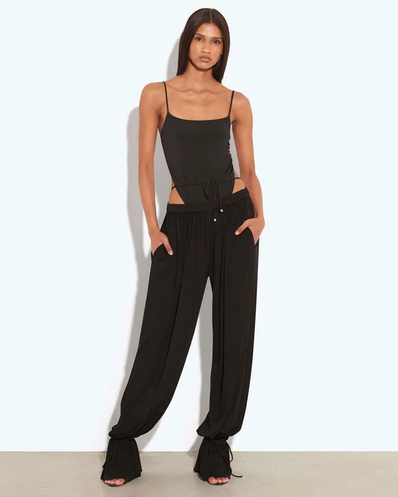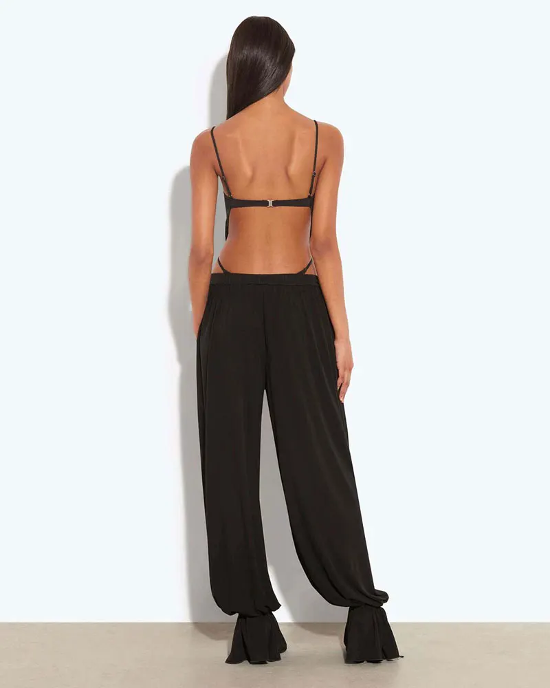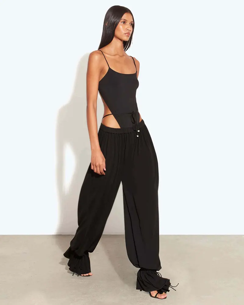 Two Piece Pant Set for Women Backless Bodysuit Tops and Loose Flared Pant Black Fashion Female Matching Trousers Sets