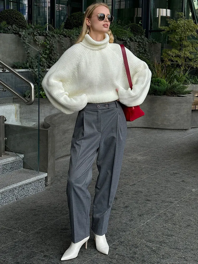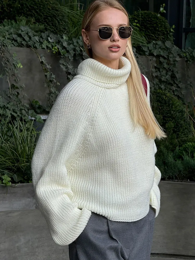 Turtleneck Loose Women's Sweater Autumn Winter Fashion Knitted Top With Unique Backless Cutout Design Pullovers