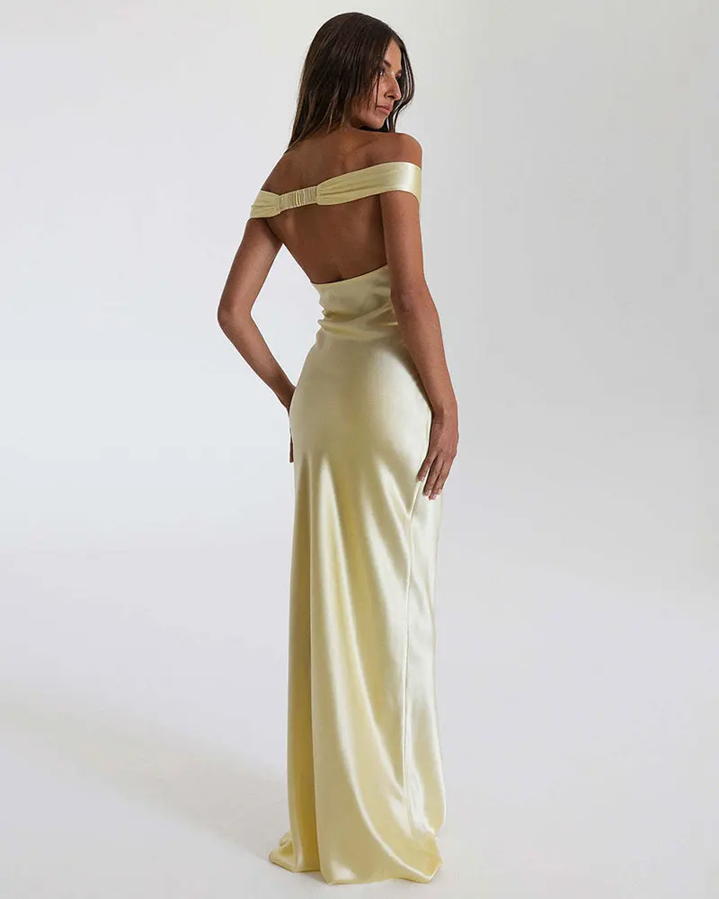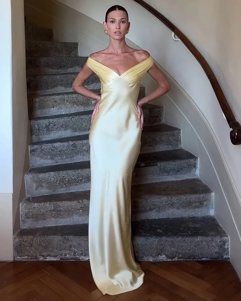 Elegant Satin Backless Maxi Dress for Women 2025 Summer New Sexy Gown Club Party Evening Long Dresses