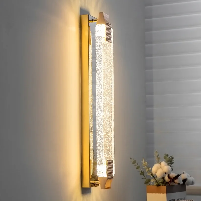 JACKSUN Modern Golden Finish Wall with Crystal Accent Long Tube Bubble Light Fixture for Hallway Living Room Kitchen Porch Foyer