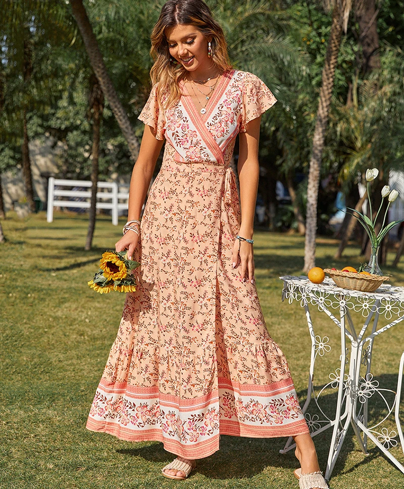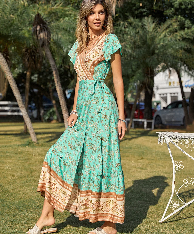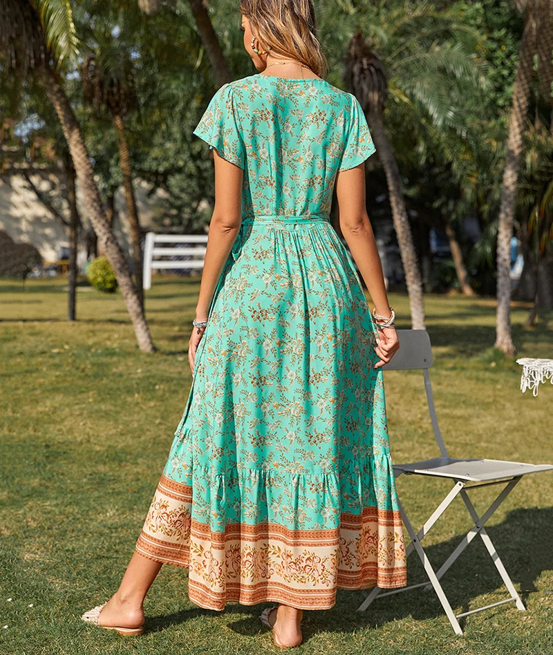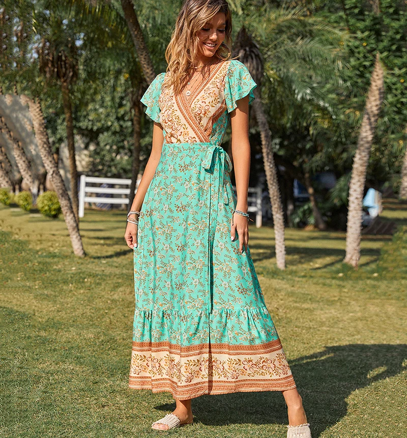 Cotton Print Long Dress for Women 2022 Summer Spring Short Sleeve Loose Elegant Holiday Beach Maxi Dresses Vestidos