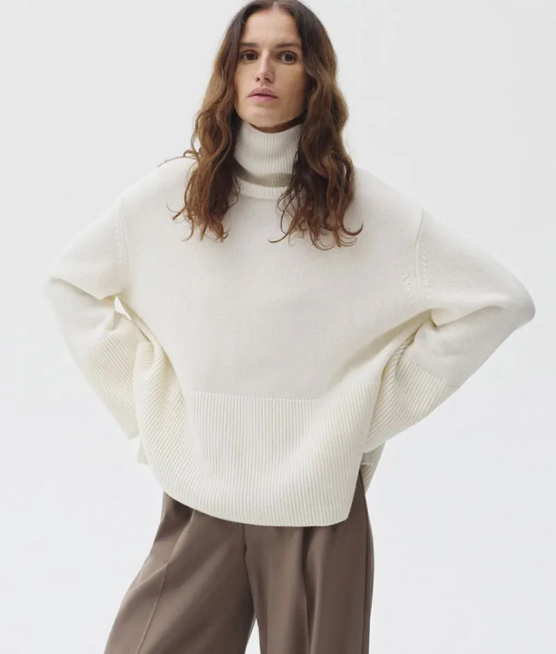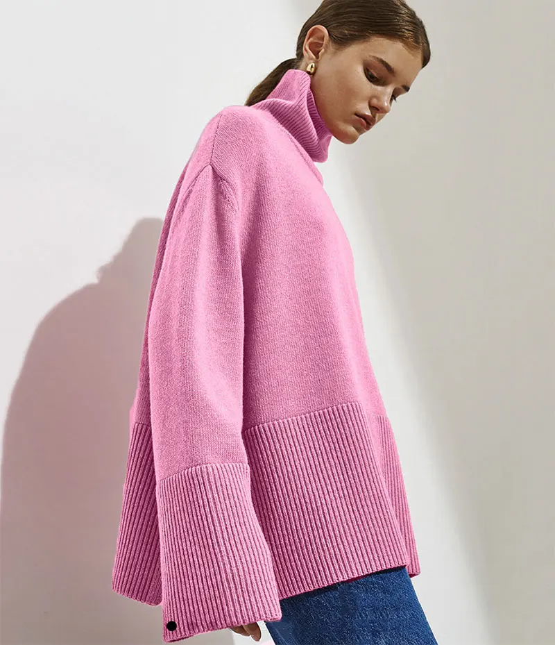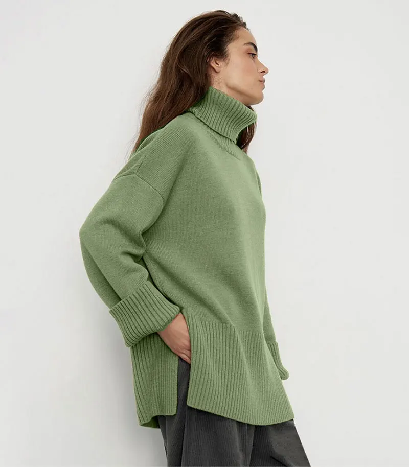 Elegant Turtleneck Knitted Loose Pullovers Sweater for Women 2024 Autumn Winter Tops Y2K Jumpers Outerwears