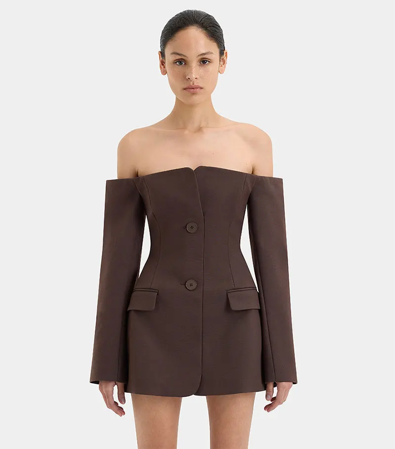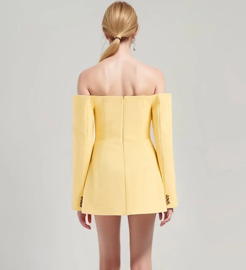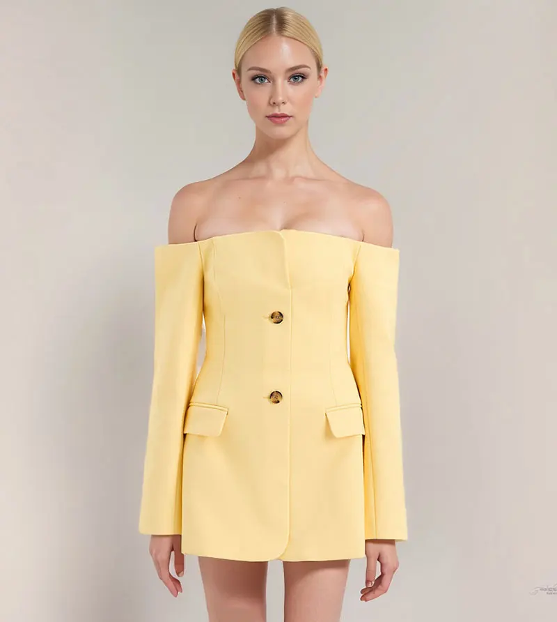 Off-shoulder Strapless Sexy Blazer Dress for Women 2024 Autumn Fashion Back Zipper Long Sleeve Club Party Mini Dress