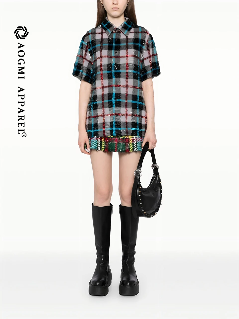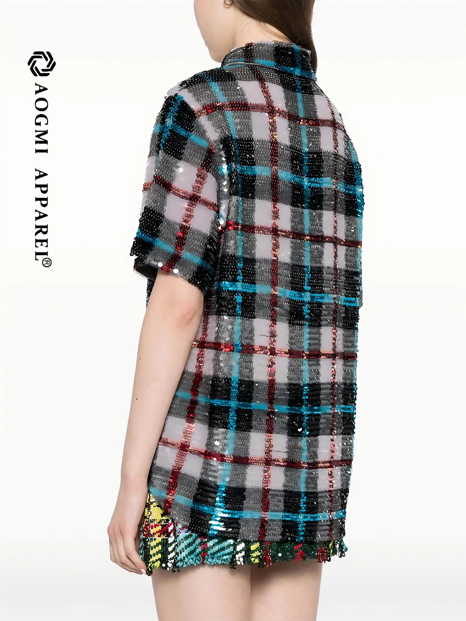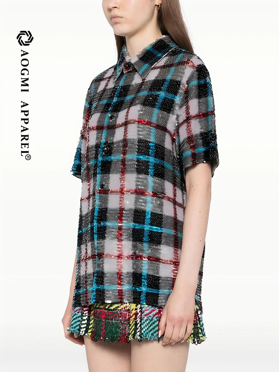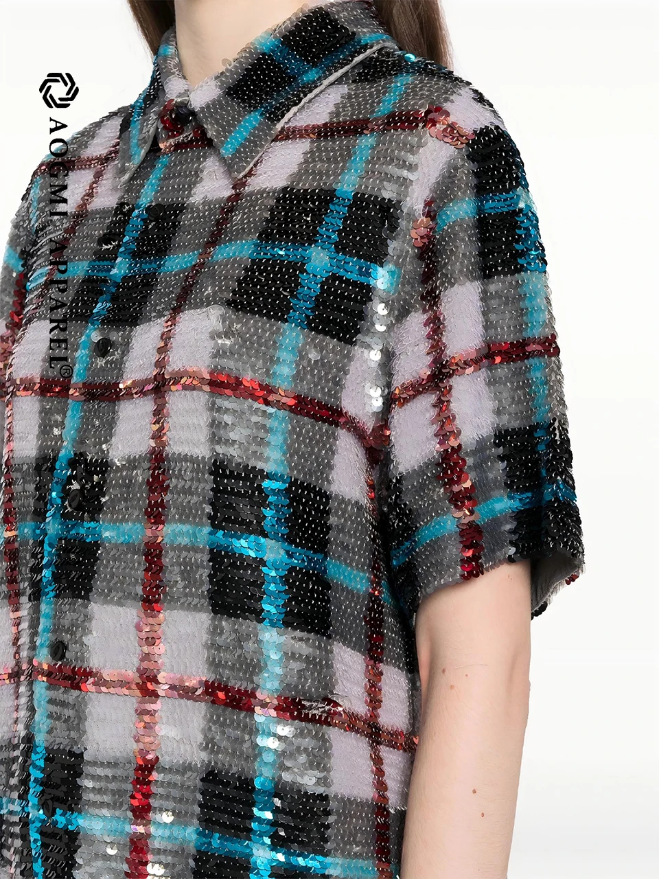 Haute Couture Fashion Ladies Casual Cotton Sequin Embroidered Plaid Spring/Summer Long Sleeve Breathable Custom Design Shirt