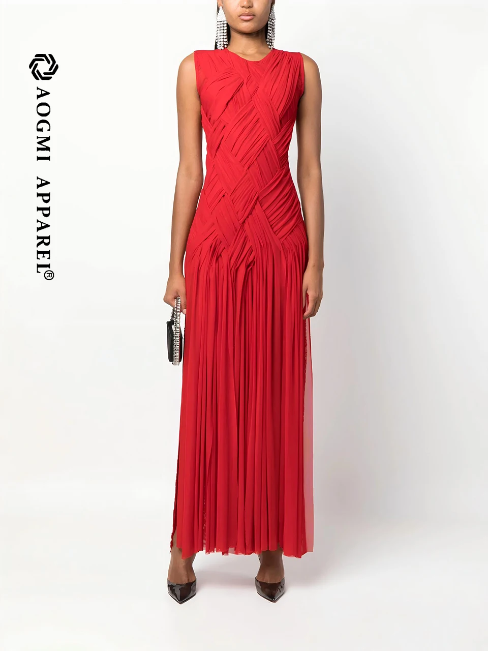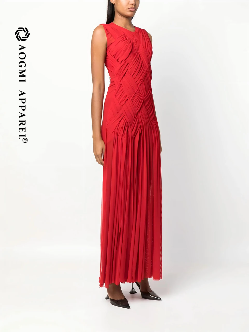 Haute Couture Luxury Fashion Ladies New Niche Design Fishbone A-Line Maxi Dress 100% Silk Eco-Friendly